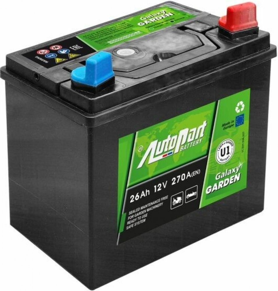 12 V 270 A Maxgear (+) pól vpravo 26 Ah B00 185 mm 128 mm 196 mm 526-U12 EN pro zahradní techniku vhodné pro domácí montáž (DIY) s horními póly (top post)