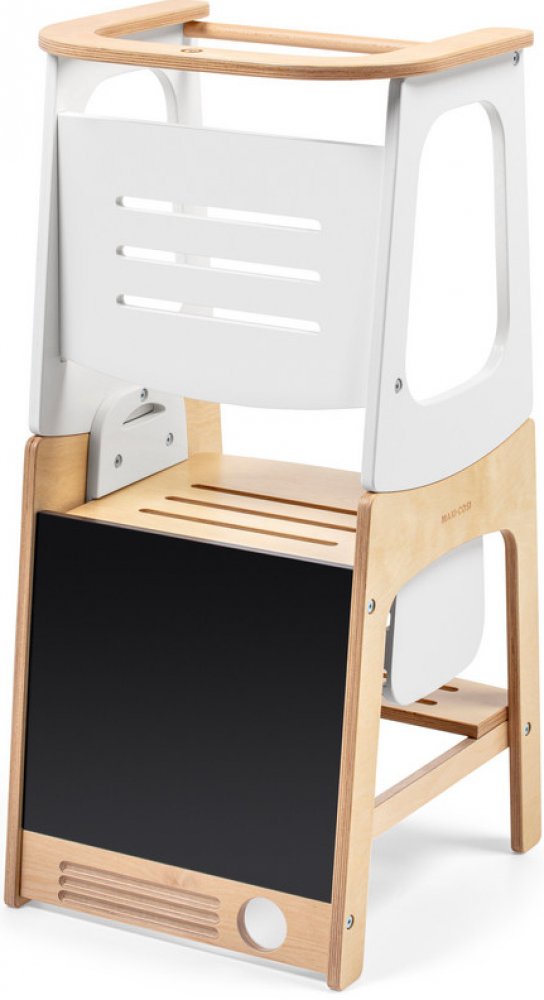 Učící věž Maxi-Cosi Toucan 3v1 inspirovaná principy Montessori pomáhá dítěti získávat větší nezávislost a samostatnost. Umožní mu pomáhat rodičům v kuchyni i rozvíjet svoji kreativitu při výtvarných aktivitách. Nastavitelná výška i zadní zábrana zajišťují, že dítě vždy bezpečně a pohodlně dosáhne na pracovní desku. Integrovaná tabule poskytuje prostor pro kreslení. Provedení 3v1 nabízí použití i jako stůl se židličkou. Úprava učící věže na stůl se židličku je velmi snadná a rychlá. Ve starším věku dítěte můžete horní část odmontovat a dál používat spodní část jako stoličku, kterou dítě využije v kuchyni i např. v koupelně při čištění zoubků. Vyrobeno v Evropě z udržitelného FSC® 100% certifikovaného dřeva. Vhodné pro děti od 18 měsíců do 6 let.