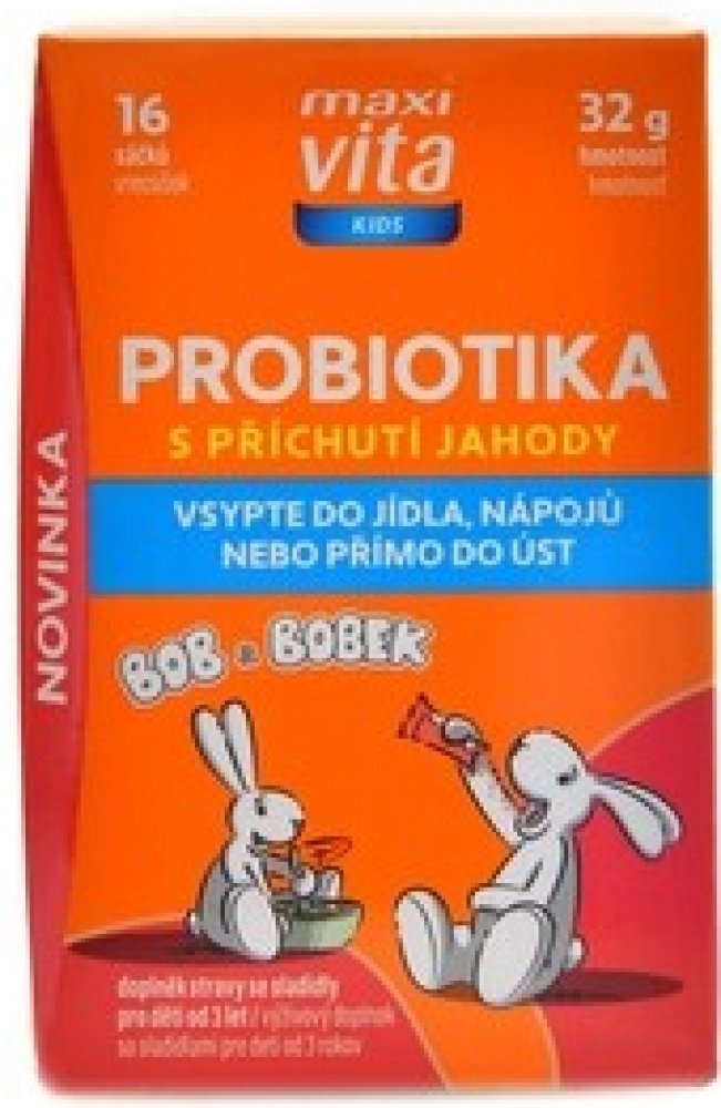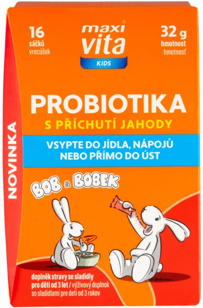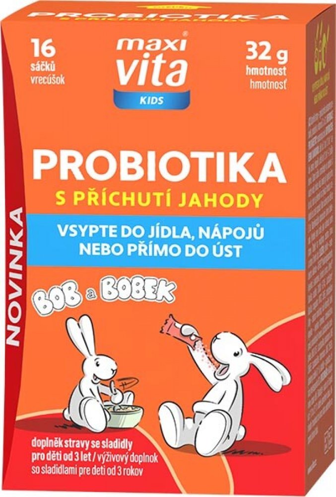Maxi Vita 16 tbl sáčky probiotika a laktobacily unisex Maxi Vita pro děti a dospívající perorální jahoda laktobacily trávení, zažívání a detox Nespecifikováno