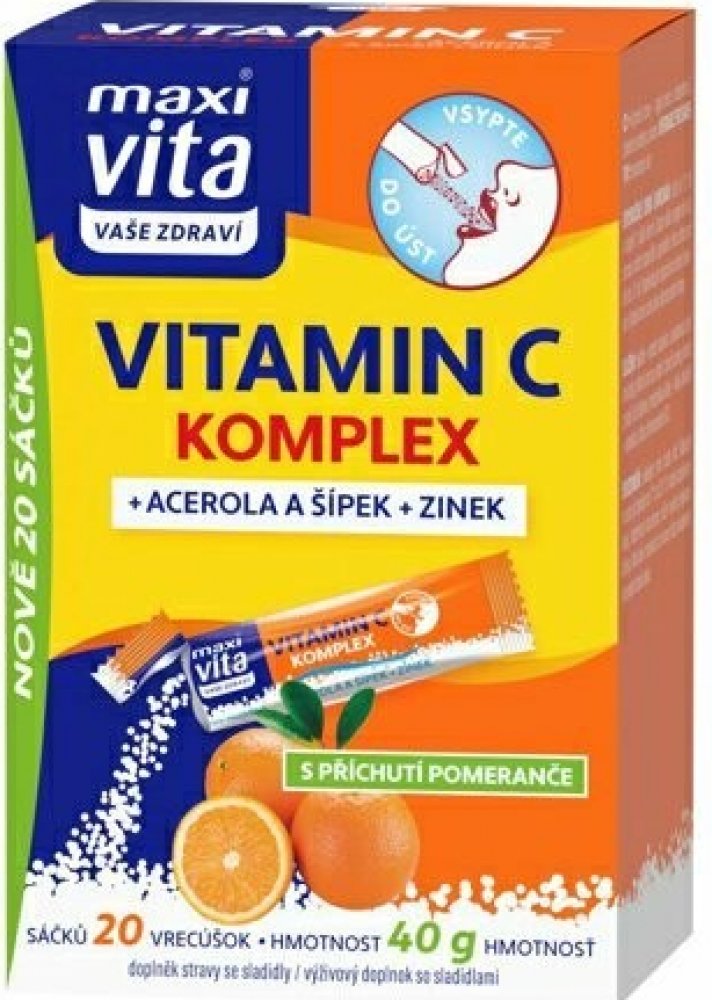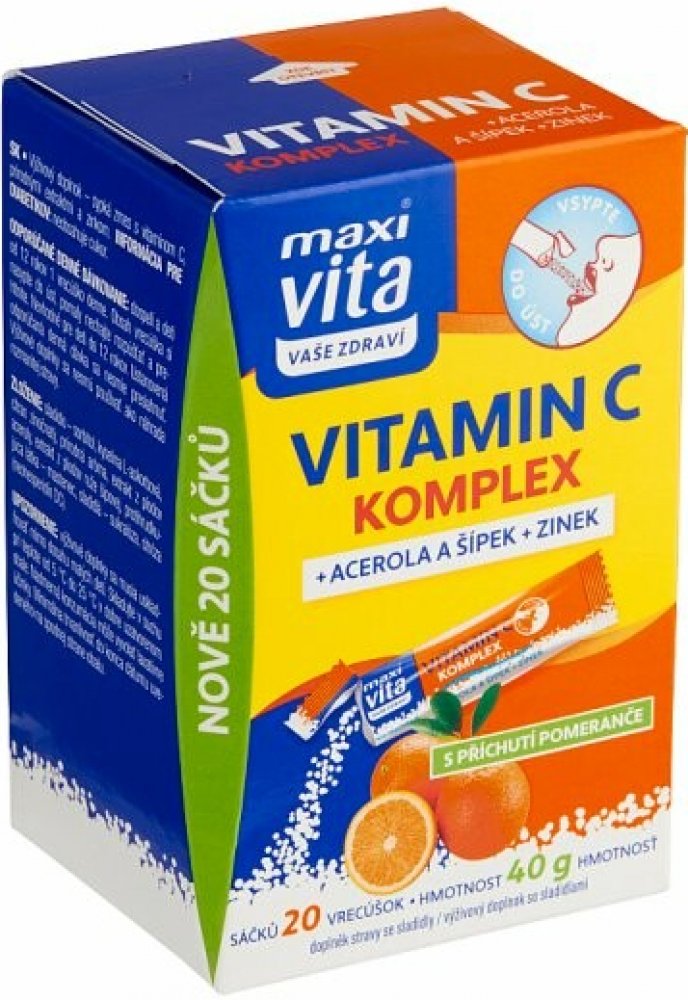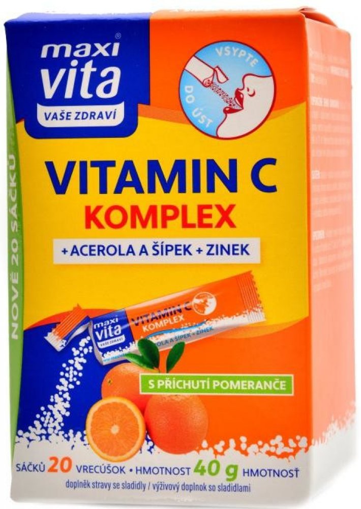 Maxi Vita Vitamin C komplex, acerola, šípek a zinek 20 sáčků