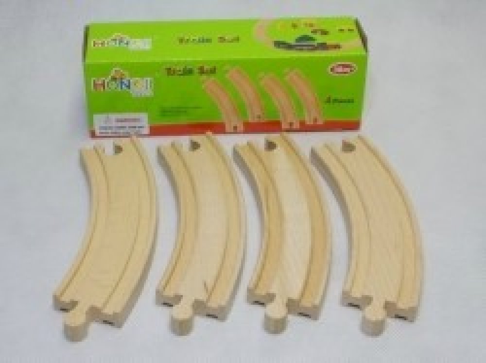 Tyto kruhové koleje jsou stejně zakřivené, jako koleje standardně dodávané v našich MAXIM setech. Díky nim je možné utvořit kruh o průměru 40cm. Vlastně lze vláčky posílat zpět odkud přijely. Pokud položíte koleje ve střídavém směru, budou se vláčky kroutit jako červi. Když je promícháte s rovnou stopou, vlak se bude kroutit jako had. Tyto 4 kruhové koleje postačí na utvoření půlkruhu.