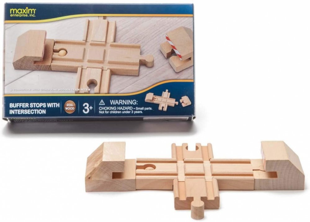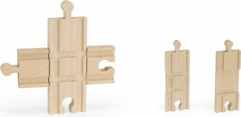 Pomocí těchto nárazníkových konců tratí, se vlak zastaví tak, že nevykolejí na konci tratě. Průsečník je zase dobrý ke křížení tratí, když nechcete použít most. Mladí inženýři musí zůstat na pozoru a sledovat křížení, aby se při průjezdu mašinek nestala nějaká nehoda. Vláčkodráhy a doplňky Maxim lze kombinovat se všemi dalšími dřevěnými vláčkodráhami na trhu. Vhodné pro děti od 3 let, obsahuje mal...