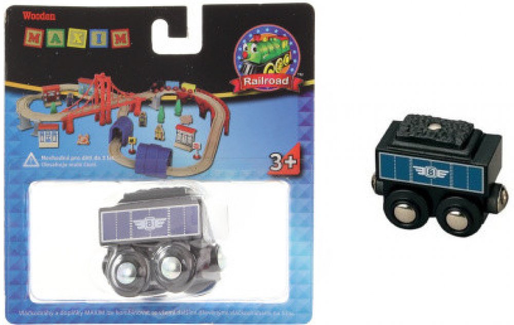 Jistě všichni dobře víte, že pro výrobu páry v parních lokomotivách, je důležitý oheň, který vytváří z vody páru. Tenhle vagón plný uhlí, umožňuje vydat se na cesty bez obav o zásoby uhlí, kotel hoří, pára syčí, hurá na cesty! Vláčkodráhy a doplňky Maxim lze kombinovat se všemi dalšími dřevěnými vláčkodráhami na trhu (Brio, Bino, Heros, Thomas aj.). Vhodné pro děti od 3 let, obsahuje malé části.Společnost MAXIM Enterprise, Inc. je mezinárodní výrobce specializující se na výrobu dřevěných hraček. Hračky této společnosti jsou vyrobeny z velmi tvrdého dřeva a byly navrženy speciálně pro malé děti. Vyznačují se vysokou kvalitou a bezpečností. Již déle než 25 let pracuje společnost Maxim na tom, aby mohla nabídnout hračky vysoké kvality, cenově dostupné pro každého.Manuální zručnost, sebejistota, kreativita, koordinace očí a rukou, rozpoznávání barev a čísel jsou příkladem jen několika z celé řady dovedností, které pomáhají rozvíjet výrobky společnosti Maxim. Vláčkové dráhy od společnosti Maxim mají nejvyšší kvalitu a jsou k dispozici v nejrůznějších cenových relacích. Společnost Maxim je jedničkou v prodeji dřevěných hraček na trhu v USA a Kanadě. Vláčkodráhy od společnosti Maxim jsou plně kompatibilní s výrobky Thomas, Brio, Bino a s ostatními kvalitními železničními systémy vyrobenými ze dřeva.