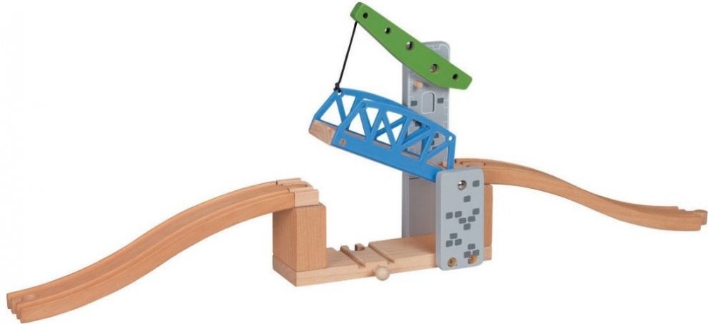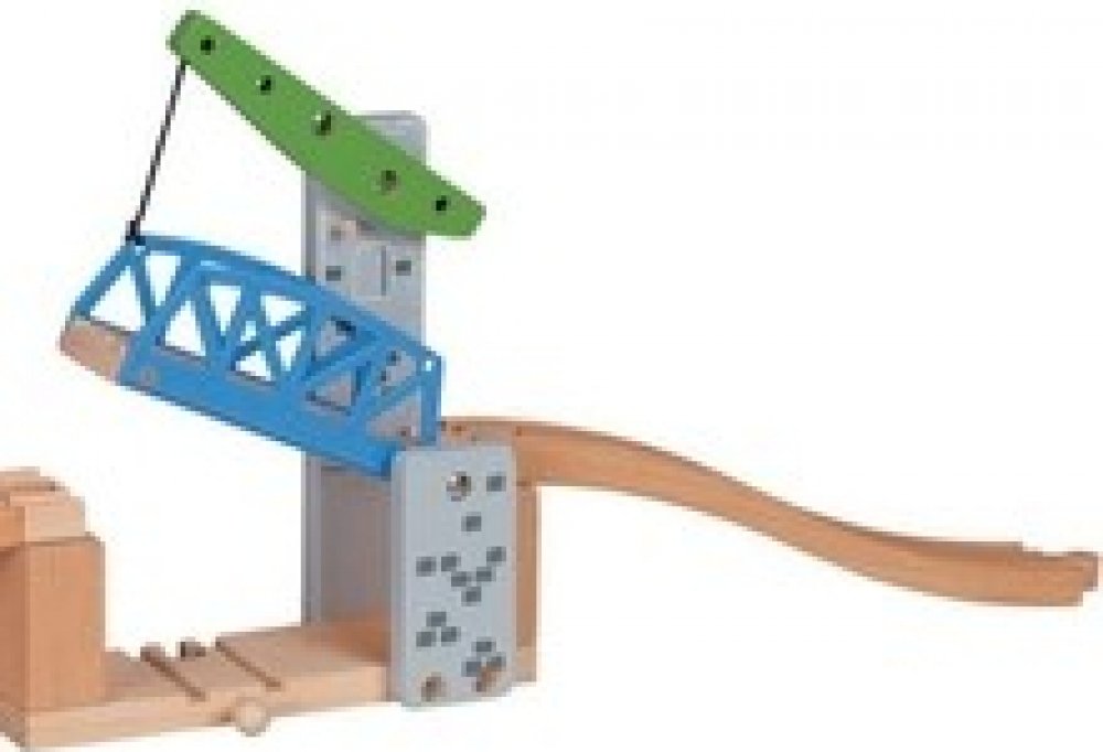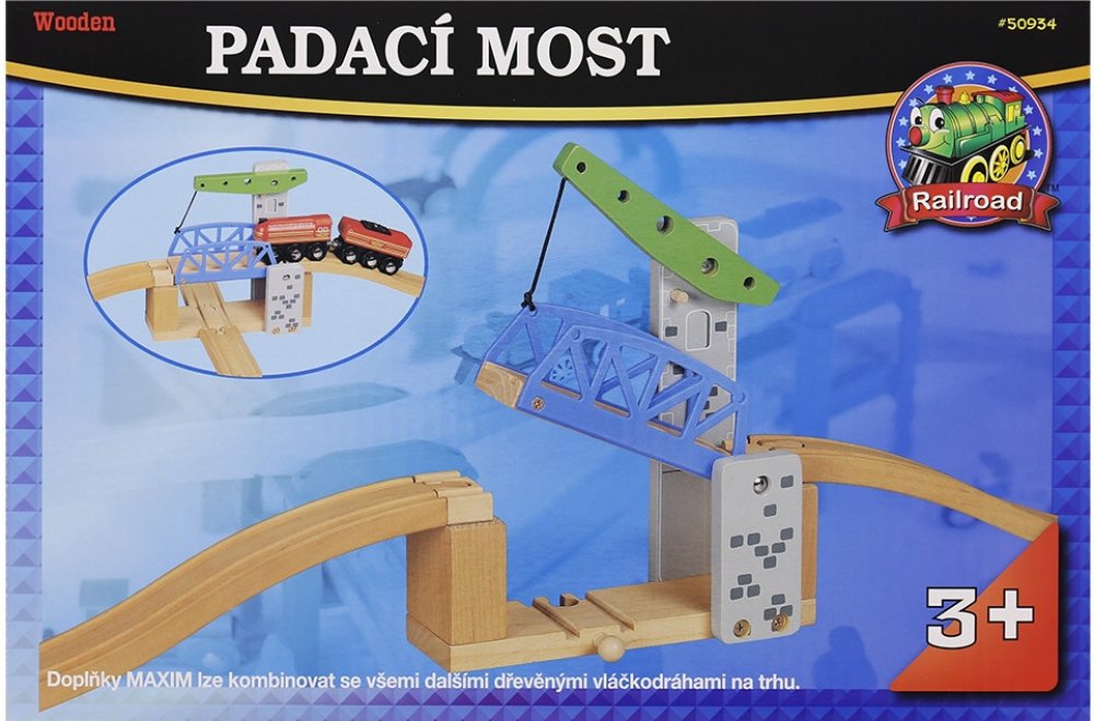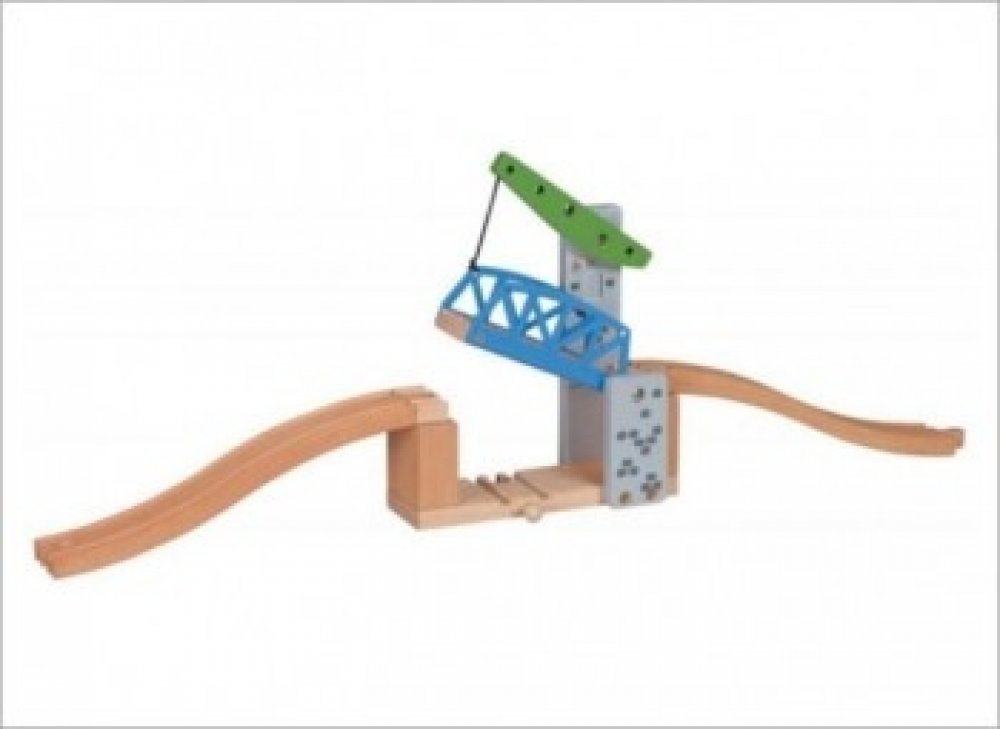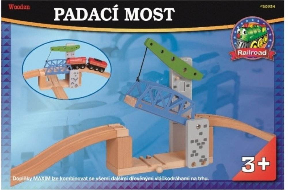 Další z řady padacích železničních mostů. Tentokrát jde o jednoramenný most, který umožní projetí každému nadměrného nákladu. Díky ramenu, most sám drží v poloze nahoře a nemůže se stát, že by samovolně spadl dolů během jízdy pod ním. Využijte Maxim doplňků a prodlužte dětem pobyt na kolejích, kde si logika s fantazií tak nádherně notuje se zábavou. Délka mostu: 60 cm včetně nájezdů.