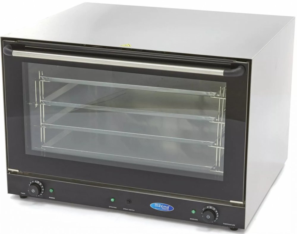 Konvekční trouba je dodávána se čtyřmi plechy o rozměrech 60 x 40 cm, které se dokonale vejdou dovnitř trouby. Mezi plechy je vzdálenost 8 cm. Troubu můžete snadno ovládat pomocí analogových tlačítek. Je také vybavena termostatem pro teploty v rozmezí 0 až 300 ºC. Světelné kontrolky ukazují, kdy trouba dosáhla správné teploty. Pomocí nastavitelného časovače můžete nastavit dobu pečení v rozmezí 0 až 120 minut. Kromě toho se jedná o odolný model díky konstrukci z nerezové oceli a smaltované vnitřní komoře trouby.