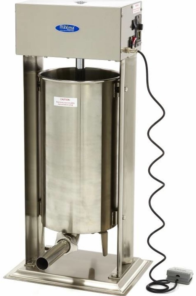 Plňte klobásy rychle a efektivně pomocí této automatické plničky klobás s kapacitou 25 l. Tento profesionální plnič klobás je vyroben výhradně z nerezové oceli a dodává se se čtyřmi plnicími trubkami o průměru 16, 22, 32 a 38 mm. Obdržíte také nožní pedál k ovládání plničky klobás, takže budete mít volné ruce k efektivnímu plnění a otáčení klobás. Přítlačná deska má otvor pro odvzdušnění a je utěs...