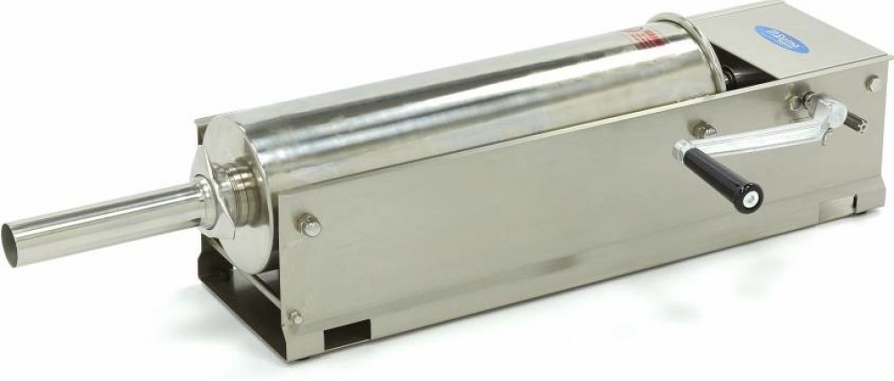 Protože ruční výroba klobás je obtížná a časově náročná, je tento přístroj cenným doplňkem každého řeznictví. Tato profesionální plnička klobás je vyrobena výhradně z nerezové oceli a má plnicí kapacitu 7 l. Plnička klobás se dodává se čtyřmi plnicími trubkami z nerezové oceli o průměru 16, 22, 32 a 38 mm. Přítlačná deska obsahuje otvor pro odvzdušnění a je opatřena těsněním. Pomocí přítlačné desk...