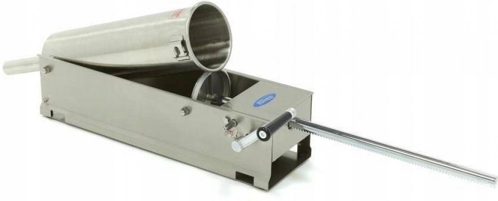 K výrobě klobás s touto robustní plničkou klobás můžete použít jednu ze čtyř plnicích trubek. Plnicí trubice určují tloušťku párků. Stačí naklonit zásobník směrem k sobě a naplnit jej přísadami. Střevo používané k výrobě klobásy se nasune na plnicí trubici a musí se pevně držet. Otočte klikou a přísady se vtlačí do plnicí trubice. Je důležité, aby byl plášť naplněn co nejtěsněji a aby se do něj nedostal žádný vzduch. Když je klobása hotová, několikrát s ní otočte a vyjměte ji z plnicí trubice.