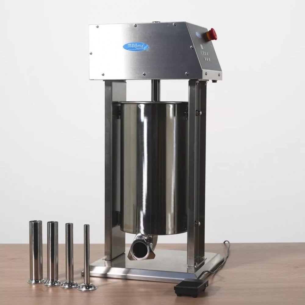 Pro přípravu klobás nejprve zvolte požadovanou velikost plnicí trubice. Umístěte plnicí trubici na plničku klobás. Poté vyklopte zásobník a naplňte jej vybranými ingrediencemi. Poté nasuňte střívko nebo umělé střívko na plnicí trubici. Zvolte správnou rychlost a nožním pedálem spusťte plnění. Pomocí dvou rukou můžete rychle plnit a otáčet klobásy a během okamžiku vyrobit velké množství klobás. Tato automatická plnička klobás je vybavena nouzovým vypínačem pro spuštění nebo zastavení plničky klobás. Digitální displej zobrazuje přesnou rychlost, kterou lze snadno nastavit pomocí dotykových tlačítek.