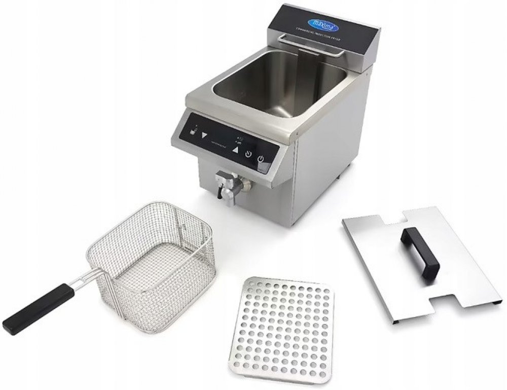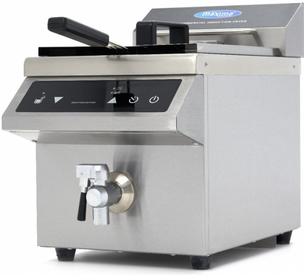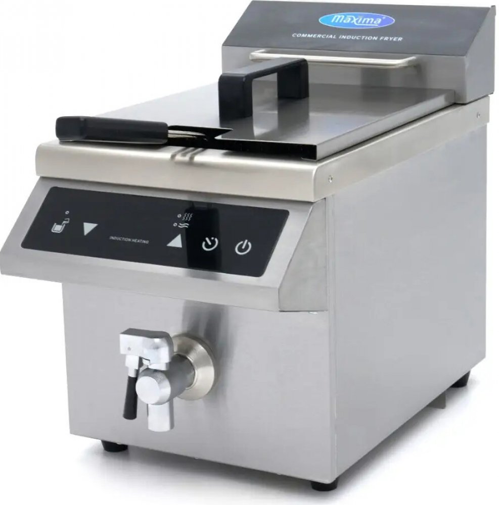 Indukční fritéza s kohoutkem - 1x8 L | Maxima 09371090 je luxusní cateringová indukční fritéza 1 x 8 litrů s LED displejem a dotykovým ovládáním. Je to profesionální fritéza s nastavitelným časovačem 0 - 120 minut. Teplotní rozsah 60 - 190 ° C. Vybavená kohoutkem. Níže najdete všechny charakteristiky modelu Maxima 09371090: