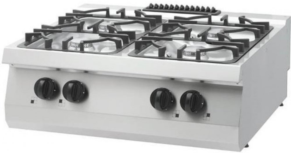 Těžký sporák - 4 hořáky - plyn - 30kW, Tento těžký sporák má čtyři hořáky a je vyroben ze silné nerezové oceli s robustními komponenty, které jsou určeny pro dlouhodobé a intenzivní používání. Tento spolehlivý přístroj vydrží dlouhá léta i v těch nejvytíženějších kuchyních, Plně nerezový kryt, Těžké litinové podpěry pánví, Bezešvě svařovaná horní část, Chromované hořáky pro nejlepší výkon, Těžké komponenty, Vybavený pilotním světlem, Bezpečnostní termostat 100-300 °C, Bezpečnostní ventil pro plyn s termočlánkem, Vhodný pro LPG nebo zemní plyn, Velmi odolná konstrukce, Hygienický design, Snadné čištění, Specifikace výrobku, Čistá hmotnost: 50 kg, Rozměry přístroje: Výkon plynového hořáku: 4 x 7,5 kW, Celkový výkon plynu: 30,0 kW, Předinstalované plynové vstřikovače: G30 - LPG (propan / butan)