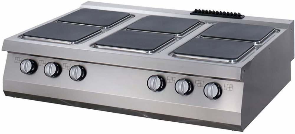 Elektrická varná deska Premium je vybavena 6 plotýnkami. Tato varná deska je určena pro intenzivní používání a ergonomický design zpříjemňuje práci. Pouzdro je kompletně vyrobeno z nerezavějící oceli, takže se snadno čistí. Litinové varné desky jsou hermeticky uzavřeny a tvoří v horní části celek.