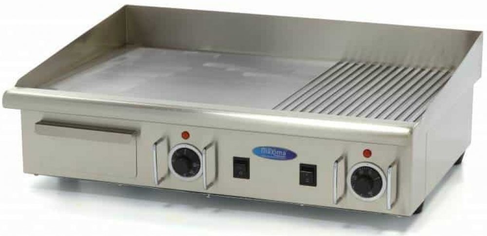 Napůl hladký, napůl drážkovaný povrch s grilovací deskou o tloušťce 6 mm
