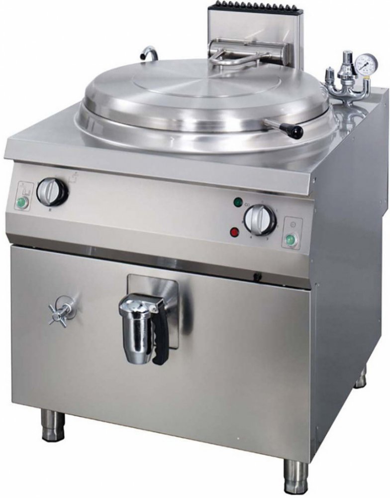 Varná pánev Premium o objemu 150 l je ideální pro vaření, pečení nebo pošírování jídla. Varná nádoba má dvoustěnnou poklici, která zvyšuje izolaci varné nádoby. Víko se také snadno otevírá a zavírá díky sklopnému a vyváženému mechanismu. Tato varná pánev má systém přímého ohřevu; jednostěnná varná pánev má zdroj tepla přímo pod pánví. Protože je varná pánev kompletně vyrobena z nerezavějící oceli, je snadné ji čistit.