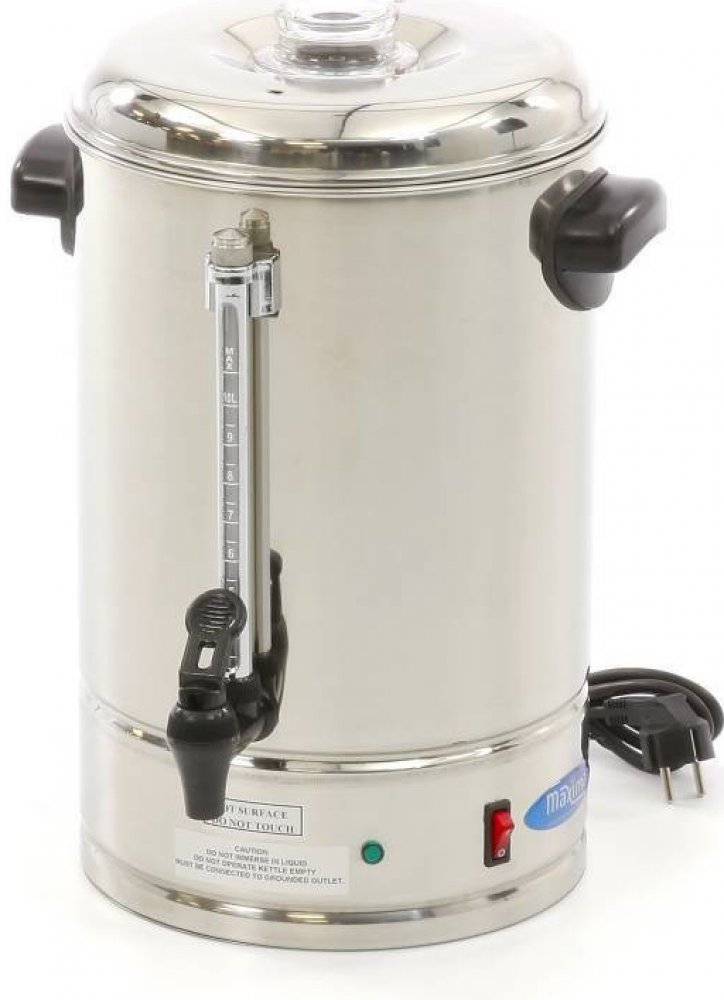 Maxima Coffee Percolator 10 L je profesionální kávovar, ve kterém připravíte a uskladníte až 10 litrů kávy. Tento perkolátor je velmi pěkně zpracován a má vnější povrch z nerezavějící oceli a víko, díky kterým se stane ozdobou vaší kuchyně. Tento kávovar od Maxima je také ideální k používání. Externí hladinoměr vám řekne, jak je konvice plná, kromě toho vám při používání tohoto stroje pomohou i rukojeti.