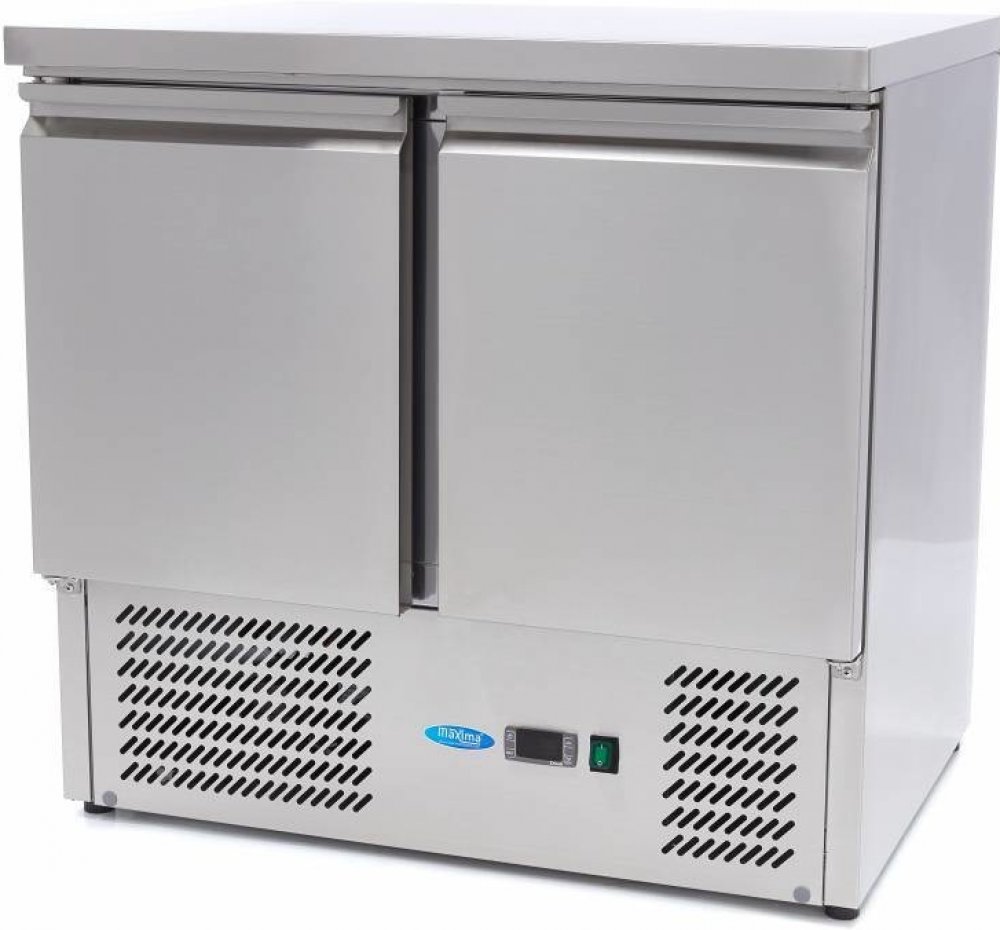 Chladicí pult MX SAL901, Pěkně chladný pracovní stůl a luxusní design. Nerezová konstrukce s plně nerezovou pracovní deskou. Objem 257 l. Chladicí systém s ventilátorem. S digitálním regulátorem teploty a nastavitelnými poličkami a., Krásný chlazený pracovní stůl s luxusním designem, Nerezová konstrukce s plně nerezovou pracovní deskou, Rozměry 2 dveří se 2 robustními dveřmi z nerezové oceli, Objem 257 l, Vybavený nastavitelnými policemi (jedna na každé dveře), Digitální regulace teploty (DIXELL), Chladicí systém s ventilátorem, Pěnový výparník na 3 stranách, Unikátní chladicí cyklus pro snížení tvorby ledu, Vnitřní a vnější strana z nerezové oceli AISI 304, Kompresor Zanussi, Chladivo R600a / bez freonu, Maximální teplota okolí 32 °C, Kompaktní ochranná izolace 35 mm, Teplota: 0° až + 10° stupňů Celsia, Standardní exkluzivní zásuvky, Čistá hmotnost: 72 kg, Vnitřní rozměry: Vnější rozměry: Š830 x D595 x V500 mm, Vnější rozměry: Š830 x D595 x V500 mm, Vnější rozměry: Š830 x D595 x V500 mm, Vnější rozměry: Š830 x D595 x V500 mm: B900 x D700 x V880 mm, 230 V / 50 Hz / 1 fáze 230 W,