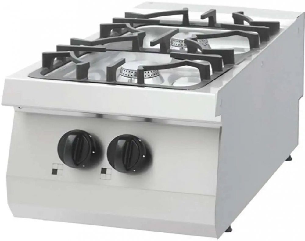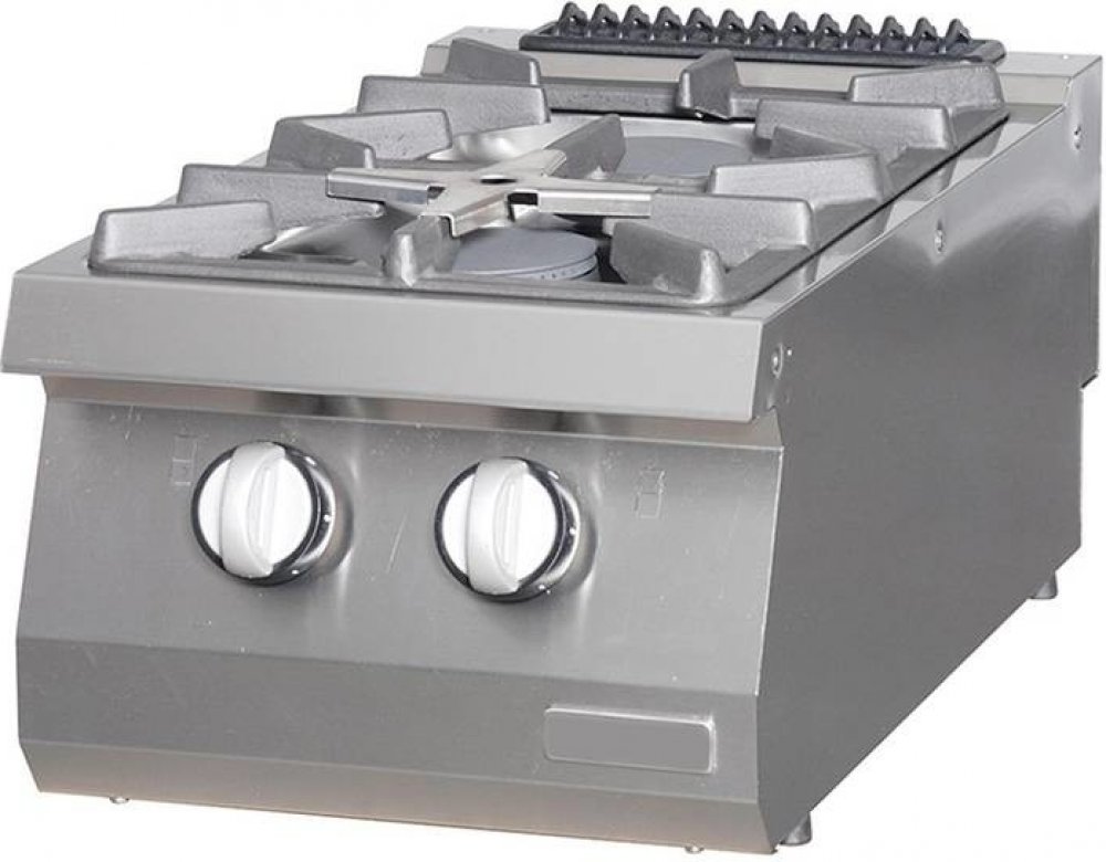 Ve velkých a rušných kuchyních je důležité, aby kuchyňské vybavení bylo odolné a mělo dlouhou životnost. Tato plynová varná deska se dvěma hořáky je speciálně navržena pro intenzivní každodenní používání a je ideální pro každou restauraci, kavárnu, hotel, snack bar nebo jiné stravovací zařízení. Robustní a vysoce odolná konstrukce se skládá z pouzdra z nerezové oceli a těžkých litinových podpěr pánví. Vysoce odolné komponenty vydrží velké opotřebení. Varnou desku můžete také rozšířit o nerezový podstavec, který lze rovněž objednat.Vhodné pro LPG a zemní plynPráce s touto plynovou varnou deskou je praktická také díky praktickým velkým otočným knoflíkům a ergonomickému designu. Hořáky jsou vyrobeny z chromu pro co nejlepší výkon při vaření. Varná deska Heavy Duty je vybavena pilotním světlem, které zajišťuje zhasnutí plynu po otočení knoflíku a je také dodatečným bezpečnostním prvkem, který zabraňuje úniku plynu. Bezpečnostní termostat můžete nastavit na teplotu mezi 100 a 300 ºC. Vestavěný je také bezpečnostní ventil pro plyn s termočlánkem. Tento profesionální vařič je vhodný pro LPG nebo zemní plyn.Hladké povrchyTato varná deska řady 700 se snadno čistí díky hladkému povrchu z nerezové oceli a litiny. Výhodou bezešvé svařované horní desky je, že v ní nezůstávají ulpívat žádné nečistoty. Vnitřní rohy jsou navíc zaoblené, aby se na nich nehromadily nečistoty. Chcete-li vyčistit všechny části, jednoduše je rozeberte a vyčistěte teplou vodou a jemným čisticím prostředkem. Vše vždy osušte měkkým hadříkem.