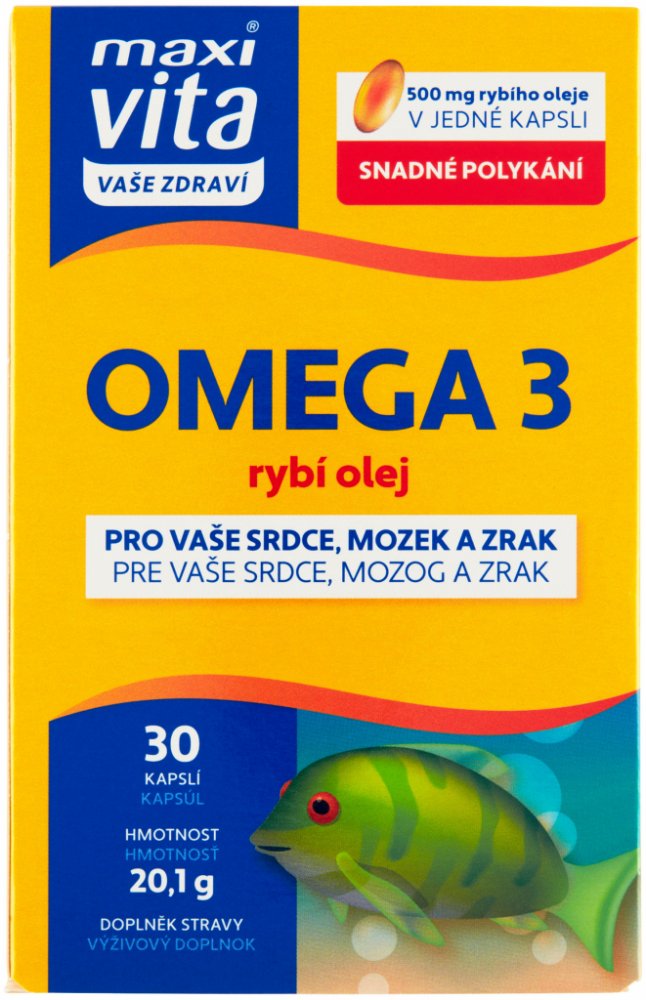 Maxi vita 30 tbl kapsle srdce unisex 15.7 g MaxiVita pro dospělé perorální od 3 let bez příchutě omega-3 mastné kyseliny srdce a cévy 7-15 300.0 mg Kdykoliv dospělí 2-4× denně, děti 1× denně Nespecifikováno