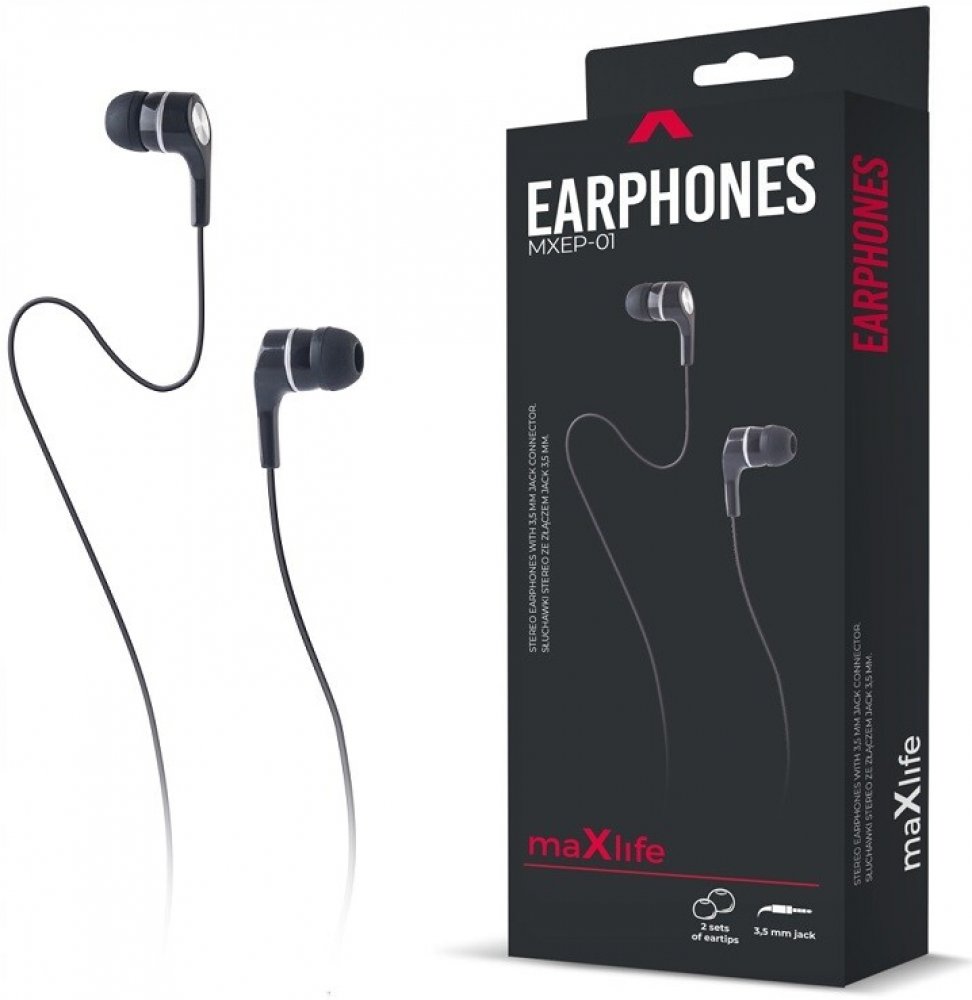 kabelová moderní k mobilním telefonům 20000 Hz 20 Hz Maxlife 100 dB/mW do uší 3,5 mm Jack špunty černá 100 cm