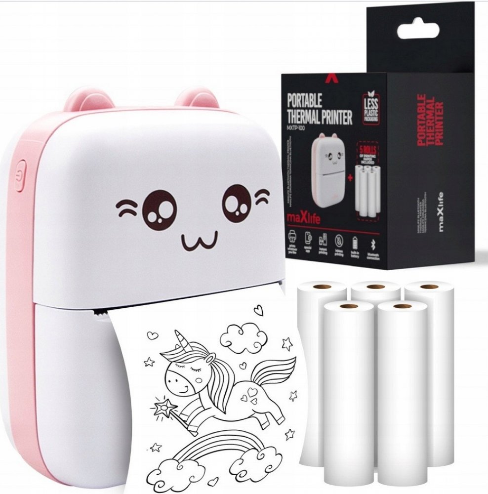 Termotiskárna Maxlife Bluetooth je praktická přenosná tiskárna, která je ideální pro tisk různých projektů - od fotografií po výkresy, poznámky, štítky, samolepky a další. Jednou z jejích klíčových funkcí je termální tisk. Dodává se s pěti rolemi termopapíru, což vám umožní tisknout bez nutnosti výměny inkoustu. Tisk je velmi snadný, zejména v kombinaci s chytrým telefonem. Tiskárna úzce spolupracuje s telefony díky speciální aplikaci FunPrint, kterou lze zdarma stáhnout z App Store i Google Play. Spojení mezi telefonem a tiskárnou probíhá přes Bluetooth 4.0 a aplikace nabízí funkce, jako je průvodce kreslením, textový editor, štítky a bannery. Editor tedy umožňuje navrhnout vše, co potřebujete. V několika málo krocích můžete vytisknout svou oblíbenou fotografii ze smartphonu v černobílém formátu. Tiskárnu lze použít také jako čtečku textu z fotografií, které lze následně upravit a přizpůsobit podle vašich potřeb. Mobilní tiskárna je ideálním řešením pro každého, kdo hledá pohodlný, cenově výhodný a kreativní způsob tisku nejrůznějšího obsahu. Díky své všestrannosti a snadnému použití se stane nepostradatelným nástrojem v každodenním životě i práci.