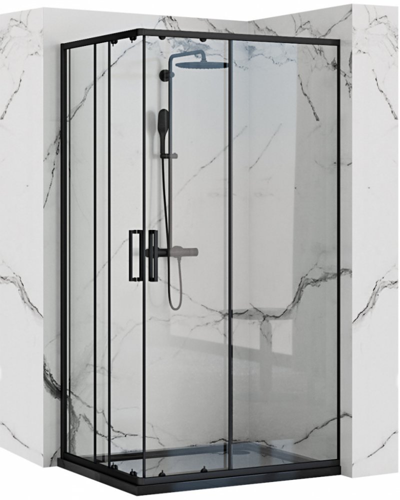 Sprchový kout PUNTO 80x100 cm - černý Sprchový kout PUNTO je vyroben z 4 mm tlustého tvrzeného bezpečnostního skla. Otevírání dveří je velmi snadné díky hliníkovým madlům v černé barvě a kolejnicovému systému dveří. Aplikovaná technologie Easy Clean zajišťuje jednoduchou údržbu skla. Sestavení koutu je universální na obě strany. Také si můžete vybrat mezi montáží koutu na sprchovou vaničku nebo p...