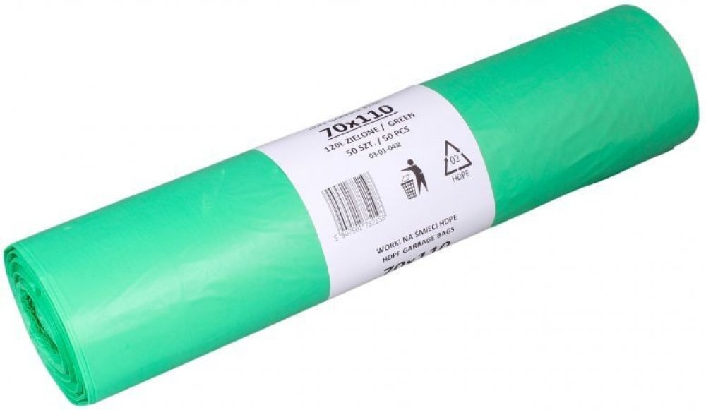 Zelené pytle na odpad z LDPE materiálu. Role 25 kusů, rozměry 70*110 cm, tloušťka 40 mikronů. Pytle izolují od pachů, chrání před moly, nečistotami a prachem. Vhodné také na třídění odpadu - stejné pytle nabízíme i v dalších barevných variantách. Nosnost až 20 kg.