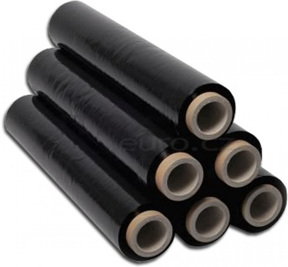 Průtažná černá fólie pro ruční ovíjení zboží na paletách nebo ovíjení krabic. Fólie je vyrobena z primárních LDPE materiálů a neobsahuje regranuláty degradující její vlastnosti. Svými mechanickými vlastnostmi splňuje nejvyšší nároky na pevný obal, neobsahuje a neuvolňuje zdraví škodlivé látky.