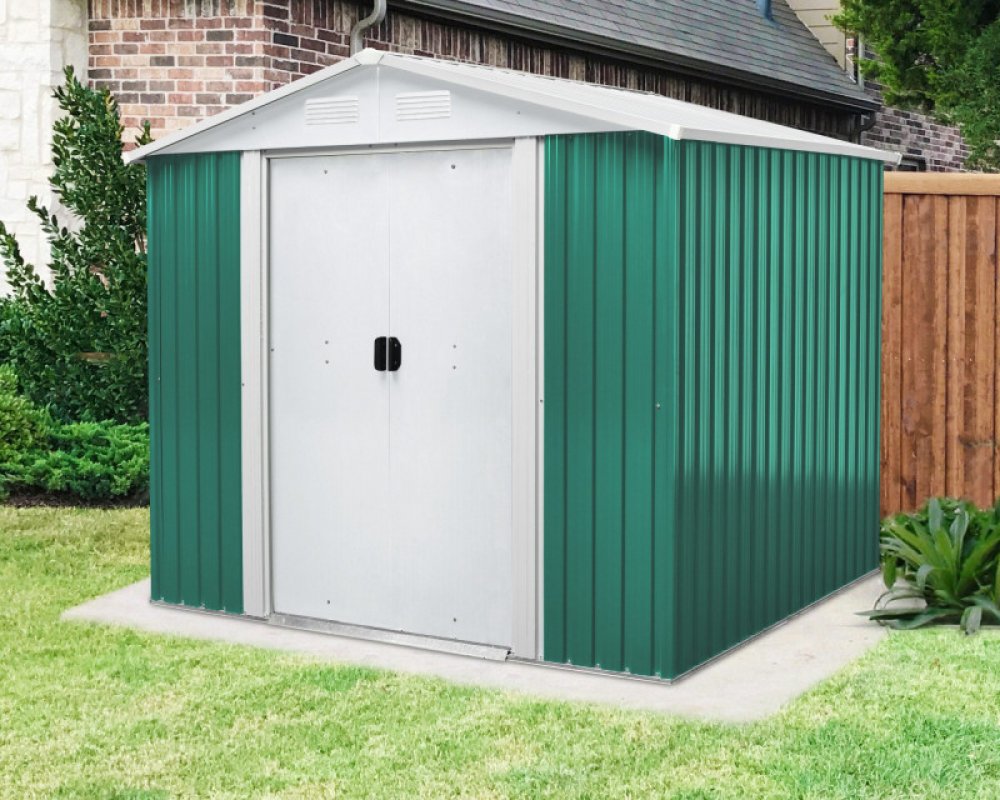 Domek je možné použít k uskladnění zahrádkářských, sportovních, bazénových, grilovacích, campingových, motoristických a dalších potřeb. Jde o jeden z nejkvalitnějších domků na českém trhu se sílou stěny 0,25 mm. Moderní design, barva, snadná montáž, celoroční použití. Kvalitní materiál s povrchovou úpravou - elektrolyticky pozinkovaný plech s žárově nanesenou barvou. Sedlová střecha, čelní posuvné dveře. Možnost uzamčení (zámek není obsahem dodávky).