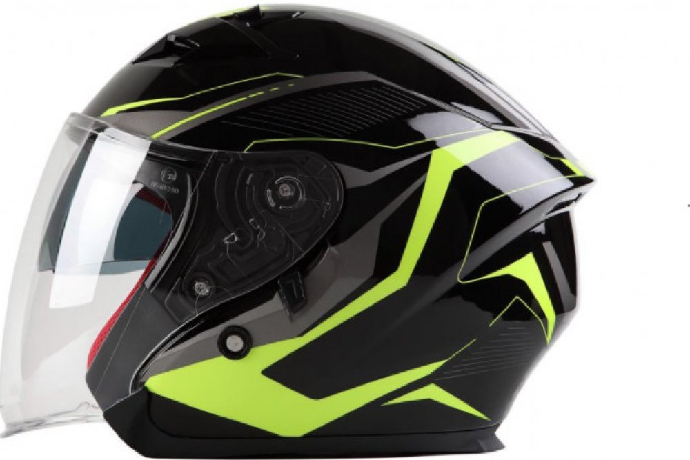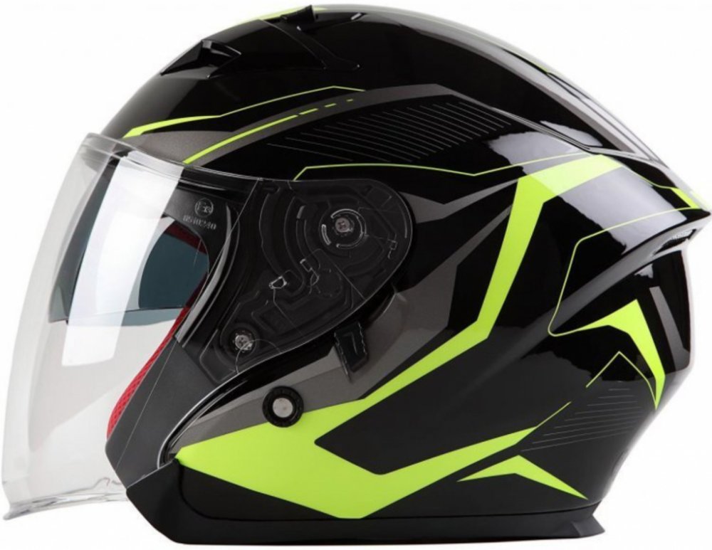 Otevřená přilba vhodná na skútr, chopper, ATV. Černá lesklá a fluo žlutozelená barva. Pouze ve velikosti 3XL, pro obvod hlavy 64-65 cm