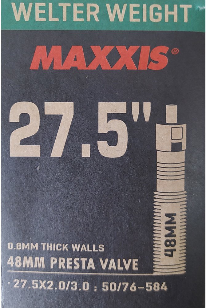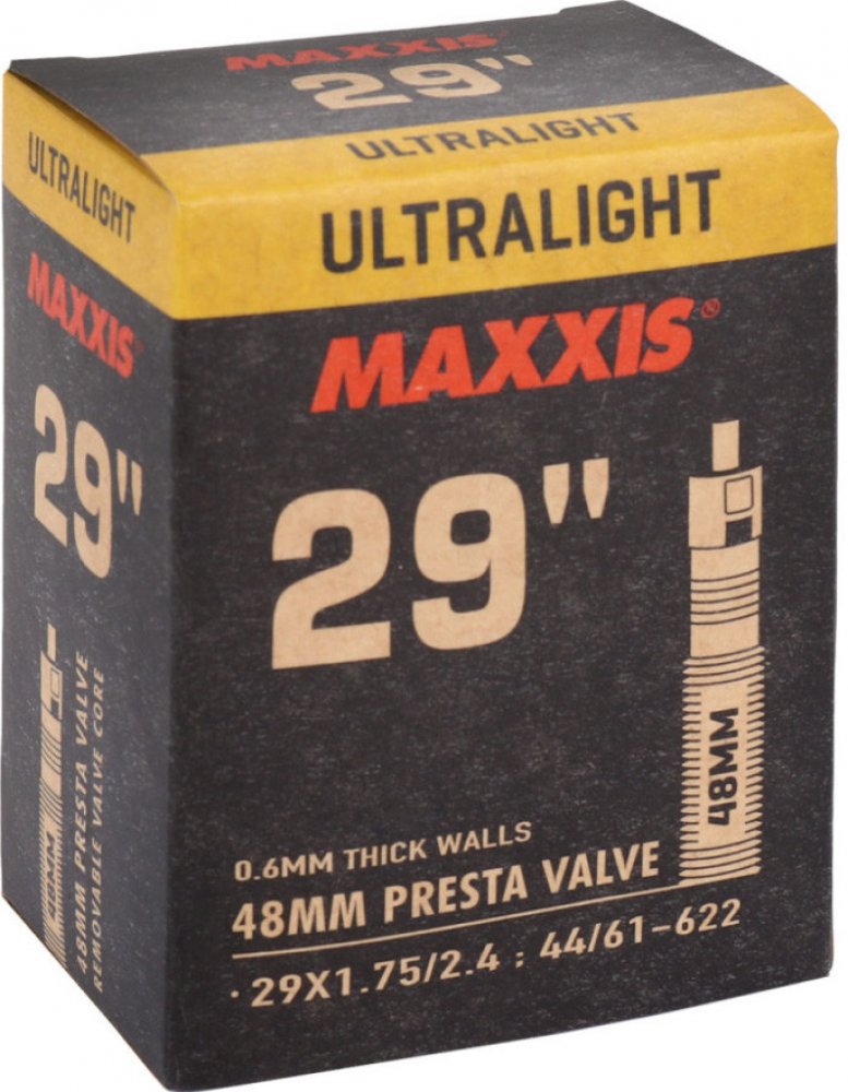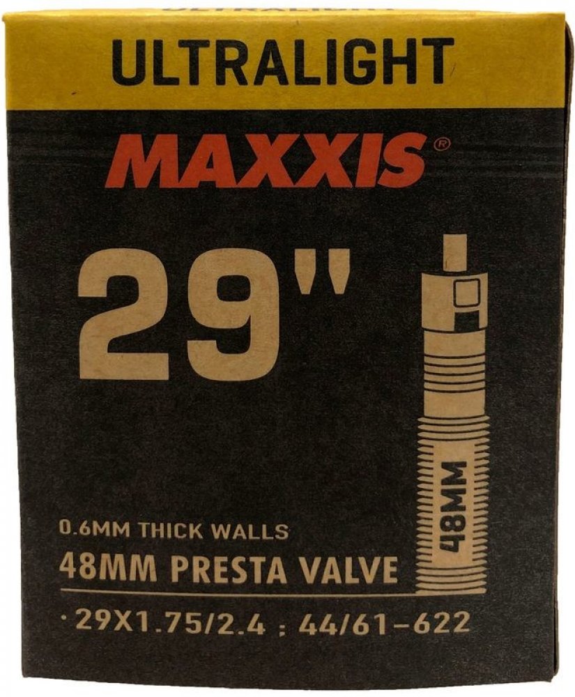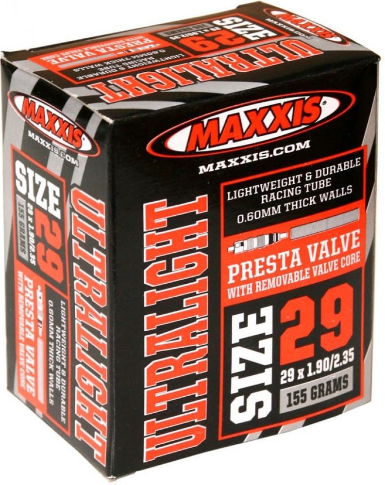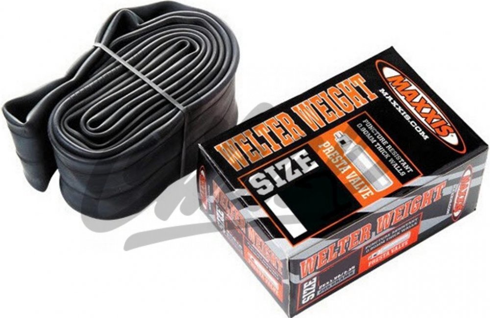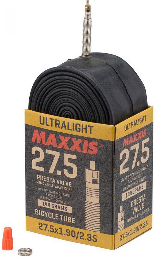 Nejlehčí dostupná duše s tloušťkou stěny 0,45 mm. Součástí je páska do ráfku Maxxis. Galuskový ventilek.