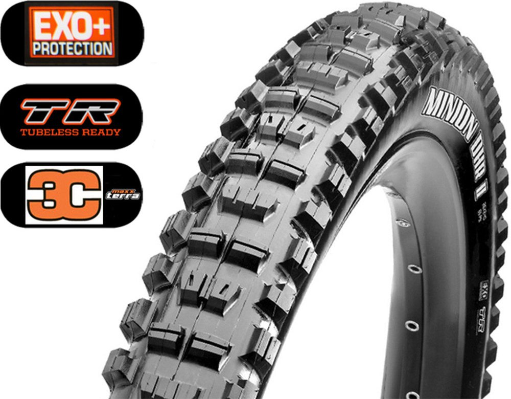 "Maxxis Minion DHR II je ideálním pláštěm pro agresivní jízdu v těžkém terénu. Navýšená akcelerace, podpora při zatáčení, zlepšený brzdný výkon. Boční výstupky jsou obdobné jako u legendárního Minionu DHF, ale jejich vlastnosti jsou vylepšeny pro použití na zadním plášti. Centrální dezén má mnoho hran a zešikmení, aby se rychle odvaloval, ale poskytl maximální brzdný výkon. 3C Maxx Terra Správná směs 3C pro enduro a freeridové pláště. Snadnost pohybu do kopce, stejně jako nejlepší přilnavost z kopce, charakterizují tuto směs i dlouhou životnost. EXO Protection Tento extrémně odolný materiál proti otěru a oděru chrání boční stěnu. Je velmi hustě tkaný, lehký a velmi pružný. Výsledkem je, že výkon plášťů zůstává přesvědčivě dobrý. Tubeless Ready (TR) Tubeless pláště mají mnoho výhod: Můžete jezdit s menším tlakem vzduchu. To vám dává lepší trakci a snižuje valivý odpor. A tam, kde není duše, se také snižuje riziko defektu. Pláště Maxxis TR jsou lépe připraveny k montáži s těsnícím mlékem než jiné „bezdušové“ pneumatiky. Patka plášťů TR je zcela pokryta gumovou vrstvou jako skutečná bezdušová pneumatika UST.