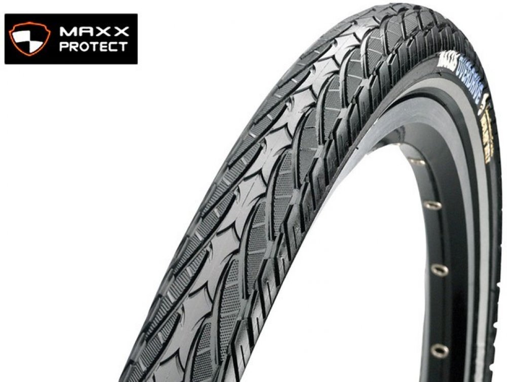 Hladký XC plášť MAXXIS Overdrive Maxxprotect s odolnou směsí 70a, která zajišťuje co nejnižší valivý odpor a maximální trvanlivost. MAXXIS Overdrive Maxxprotect vznikl, aby splnil požadavky evropského trhu. - používá slickový design s drážkami, které dovolují použití za každého počasí. - kevlarová výztuha poskytuje skvělou ochranu před defektem a o ideální trakci a zachování požadovaného směru se starají výstupky po stranách běhounu. - Maxx Protect - výztuha proti proražení - snižuje riziko defektu i při nižším tlaku vzduchu a tím zvyšuje bezpečnost jízdy a zároveň zlepšuje jízdní vlastnosti. M ezi běhounem a kordem pláště je přidaný materiál s vysokou hustotou vláken a proměnlivou tloušťkou od 0,9-1,5mm k navýšení ochrany proti defektu - Plášť je odolný proti defektu, ale zároveň si udržuje nízkou hmotnost. - Je vhodný pro jízdu na silnici, ale také při absenci hrubšího dezénu na mokrý tvrdý podklad. - Hladký běhoun zaručuje rychlý přesun, ale zároveň i pohodlí - Slickový design pro přední i zadní kolo. Hustota vláken : 27 TPI Rozměr : 47-559 (26x1,75) Max.tlak : 50psi Značkové cyklistické pláště a duše Maxxis je celosvětovým lídrem v produkci cyklistických plášťů a duší. Je znám především svými pokročilými technologiemi a produkcí špičkových produktů pro DH, XC a BMX. Maxxis má téměř 40 let zkušeností s vývojem, který je nyní soustředěn v Georgii (USA). Velkou předností je široké zastoupení plášťů a duší, ucelená nabídka dezénů, rozměrů a směsí pro všechny terény.
