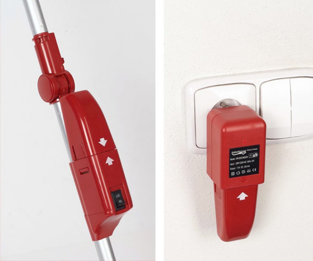 rukojeť je ergonomická, teleskopická, s kloubem otočným o 3600