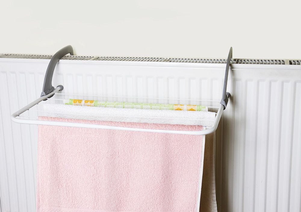 Vysouvací závěsný sušák, ideální pomocník pro sušení prádla. Nosnost 5 kg, sušicí délka 2,6 m. Závěsný sušák na prádlo Závěsný sušák na prádlo je ideální pomocník pro sušení prádla na čerstvém vzduchu, je vhodný i pro nejmenší balkony. Jeho výhodou je flexibilní možnost umístění. Závěsný sušák na prádlo využijete v menších místnostech, které nemohou pojmout velký rozkládací sušák. Závěsný sušák na prádlo je připraven ihned k použítí pouhým zvolením polohy závěsných ramen bez nutnosti složité instalace. Ramena sušáku lze posunout dopředu nebo dozadu, podle reálné šířky místa, kam potřebujete sušák umístit. Závěsný sušák na prádlo díky svým rozměrům a váze snadno a bez námahy přendáte dle aktuální potřeby i během sušení prádla bez nutnosti jeho převěšení. Závěsný sušák na prádlo - výhody, parametry: jednoduché zavěšení na balkon, radiátor, okno nebo dveře 5 pevných šňůr celková sušící délka šňůr 2,6 m odolné provedení (plast/kov) šetří prostor (sušák lze složit) rozměr 55 x 34 cm použití na max. šíři radiátoru 13 cm maximální zatížení prádlem 5 kg Závěsný sušák na prádlo dodáváme v sadě 2 ks za 158 Kč (79 Kč/ks),samostatně za 99 Kč. Na závěsný sušák na prádlo poskytujeme záruku v délce 24 měsíců.