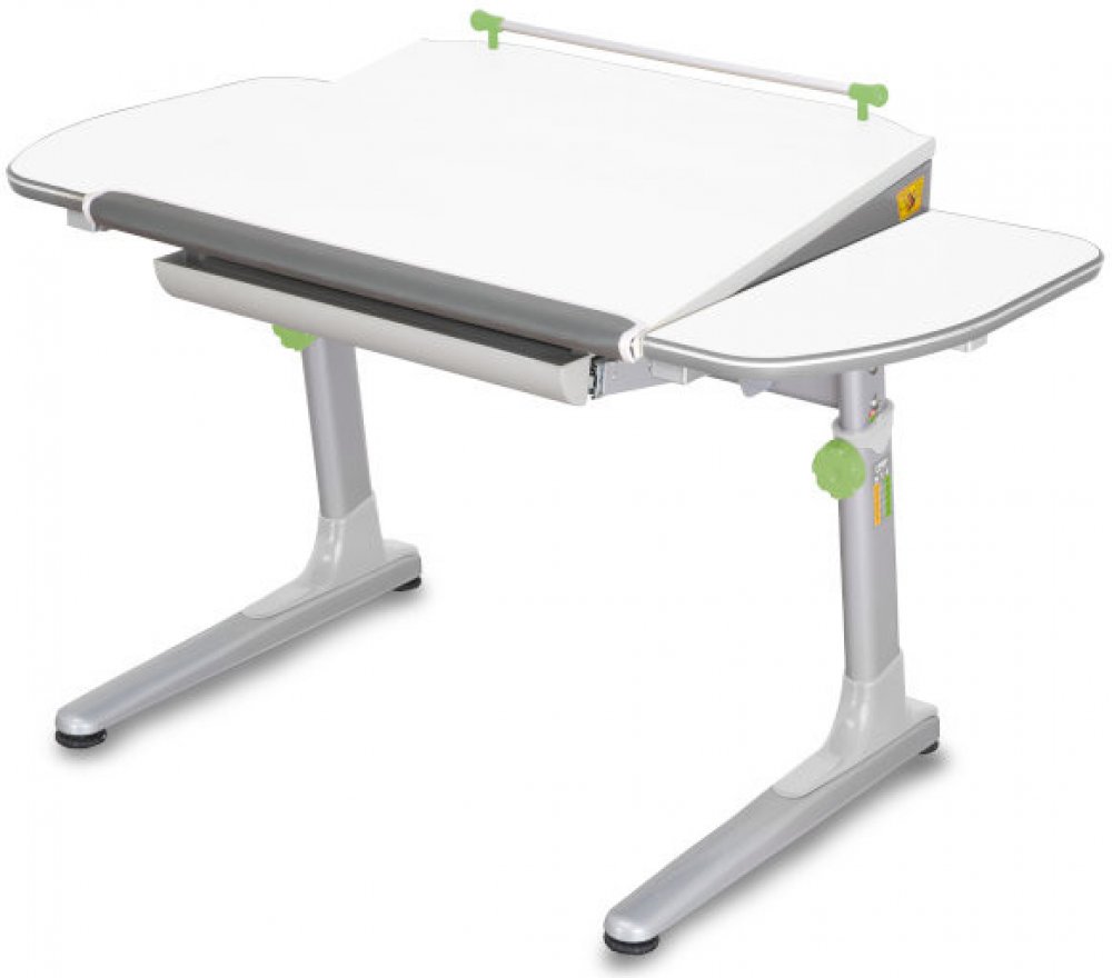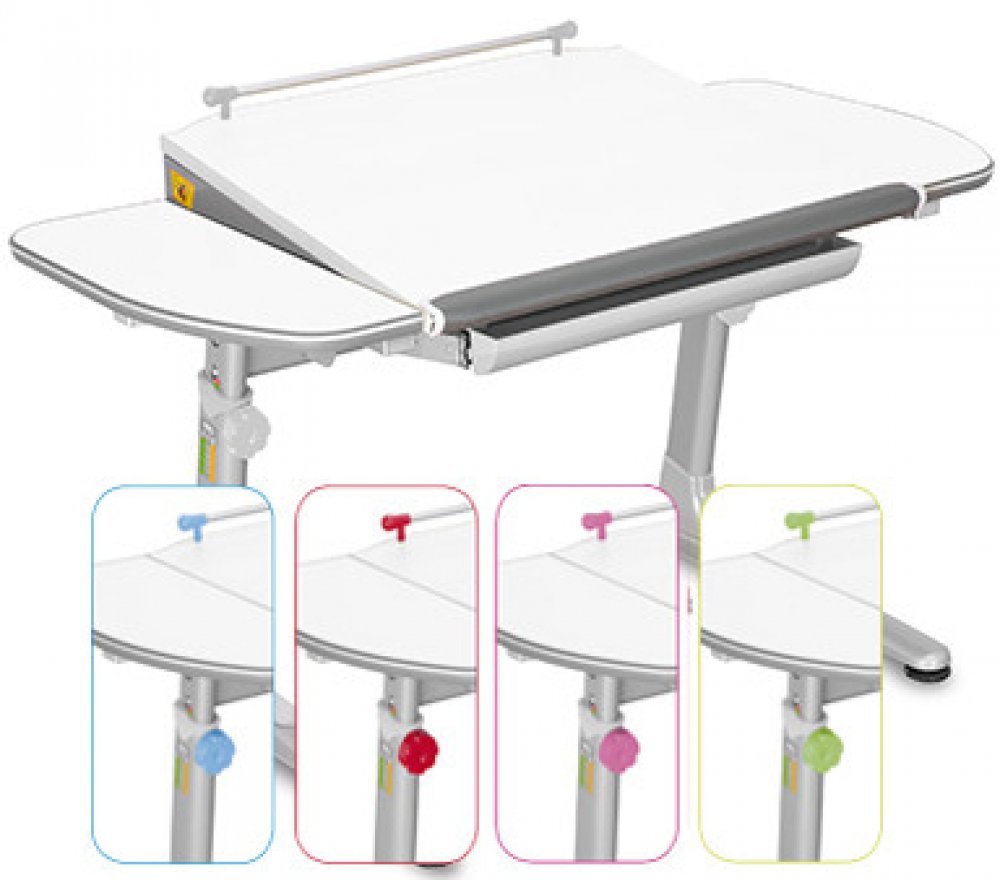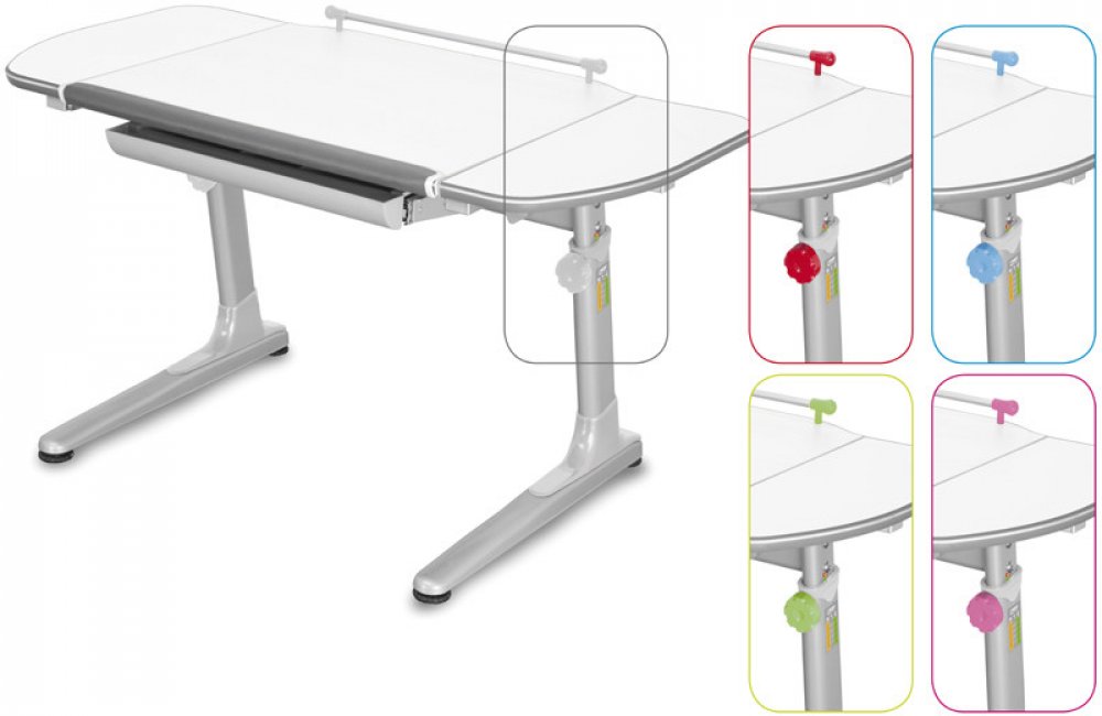 Dětský rostoucí psací stůl PROFI3 je vhodný pro výšku postavy 113 - 185 cm Stůl má javorovou desku nebo desku bílou, hrana ABS je šedá s bílou ochrannou linkou. Podnož je stříbrná nebo bílá. Součástí stolu je velký multifunkční výsuvný organizér o rozměrech 53 x 43 cm, výška je 5 cm s počtem přihrádek 6. Rozměr pracovní desky je 116 x 66 cm a je dostačující pro všechny potřebné činnosti školáka. Díky robustnímu provedení bude dětský rostoucí stůl Profi3 dlouholetým průvodcem školáka na cestě ke vzdělání. Bezpečný pohyb v okolí stolu zajišťují kvalitní oblé hrany a zakulacené rohy psací desky. Dětský rostoucí stůl má v základní výbavě držák školní brašny, lze ho umístit na levou či pravou nohu stolu. Výška desky je 57 - 75 cm a nastavuje se mechanicky pomocí šroubů. Náklon desky stolu je ve střední části plochy desky, čímž vzniknou 2 vodorovné boční díly stolu nabízejí více odkládacích ploch (sklenice s nápojem, pastelky apod.) V základní výbavě je taktéž praktická narážecí opora zápěstí s pravítkem. Plastové díly, šroub a madlo jsou na výběr v pěti barvách - šedá, červená, zelená, modrá a růžová.