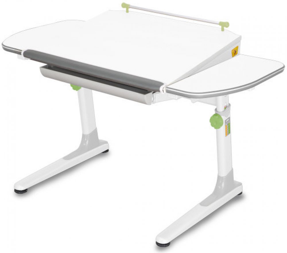 Vybavení rostoucího stolu Mayer Profi 3: výškově nastavitelný 57 - 75 cm, psací deska bílá s bílými bočnicemi 116 x 66 cm s oblými hranami, moderní šedá ABS hrana s bílou měkčenou ochranou linkou, kostra v bílé barvě, umělohmotné díly jsou v barevných variantách a bočnice v bílé barvě, zadní tyčka pro snadné uchycení a nastavení sklonu psací desky, měkká opora zápěstí s pravítkem, velká výsuvná dělená přihrádka pro školní pomůcky (tzv. organizér), držáky školní brašny na obou stranách. Záruka 5 let.