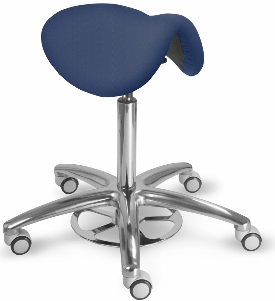 Speciální stolička vhodná pro ordinace, laboratoře, operační sály a jiná pracoviště, kde je z hlediska hygieny potřebné nastavit výšku sezení nohou. Židle s ergonomicky tvarovaným sedlovým sedákem splňuje základní ergonomické požadavky pro nastavování rozměrů podle aktuálních potřeb sedícího. Sedák židle je čalouněný koženkou nebo potahovou látkou. Barvu čalounění sedáku lze zvolit ze širokého výběru. Kříž je leštěný hliníkový a kolečka jsou měkká s automatickou bezpečnostní brzdou v nazatíženém stavu na tvrdé podlahy.Tato ergonomická stolička je velice oblíbená. Sedák - kvalitní, odolná, tvarovaná překližka, silná 10 mm (7 vrstev), široká 39 cm a hluboká (hloubka sezení) 30 cm. Čalounění - kvalitní, litá, středně tvrdá PUR pěna, vysoká 4 cm, s dlouhodobou odolností proti slehnutí. Celková výška čalouněného sedáku 5 cm, šířka 43 cm a hloubka 34 cm. Tato laboratorní stolička je určena pro vysoké zatížení. Židle je opatřena kolečky nebo kluzáky.