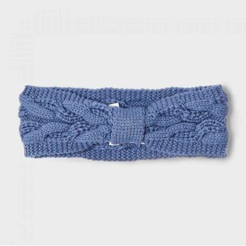 Modrá dívčí čelenka na podzim, mírnou zimu a chladné jaro od módní značky Mayoral. velikost čelenky zvolte podle obvodu hlavy dítěte, viz tabulka níže. materiál: 100% akryl artikl: Mayoral 10612-51
