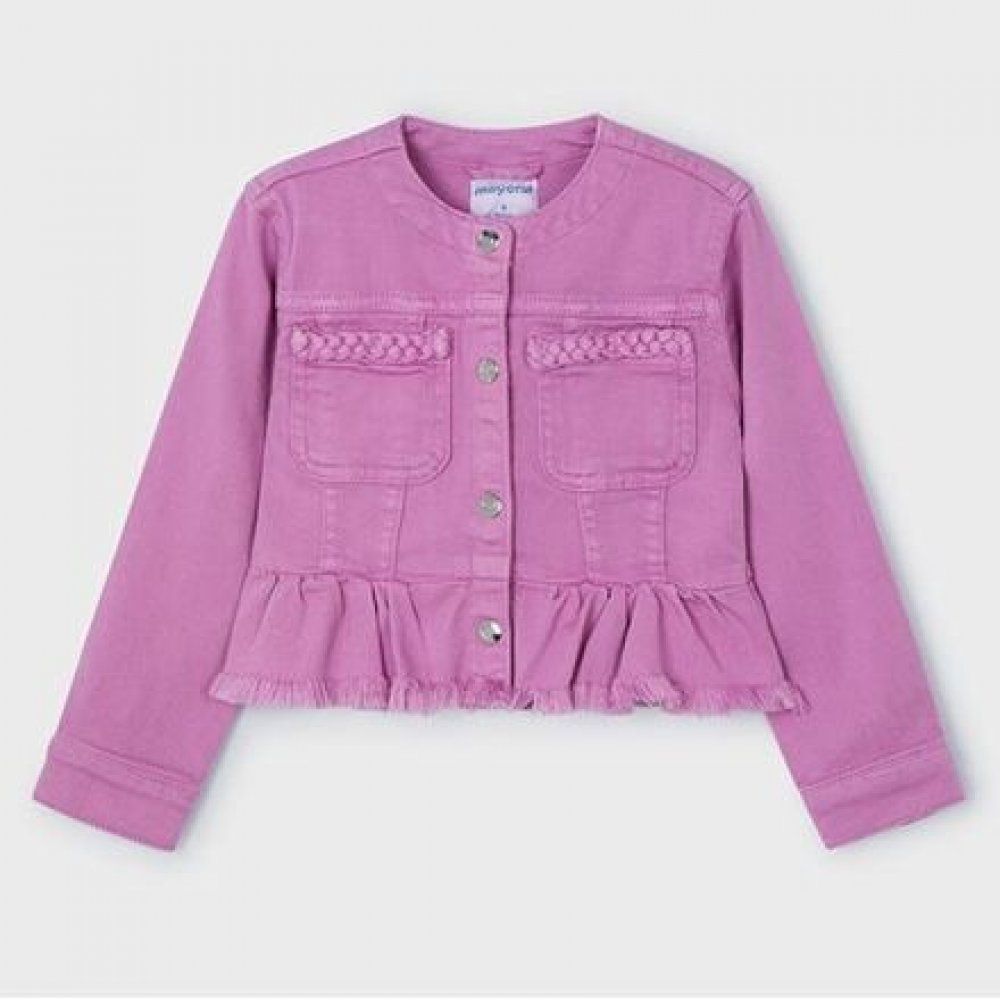 Oblíbené riflové bundičky jsou stále trendy a najdou využití v dětském šatníku od jara do podzimu. Bezvadně se hodí k šatům, sukním i ke klasickým riflím. barva růžová s borůvkovým nádechem Mayoral džíska s copánkovým zdobením na kapsičkách zapínání na patenty příjemná měkká džínovina materiál: 92% bavlna, 2% elastan artikl: Mayoral 3473-50 Orquidea