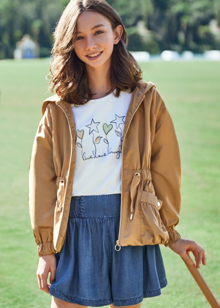 Mayoral dívčí šusťáková bunda s kapsami. Bunda má kapuci, a na přední straně dvě funkční kapsy.