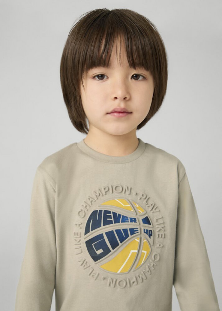 Mayoral chlapecké bavlněné triko s dlouhým rukávem a tiskem. Triko má u krku kulatý výstřih, na přední straně je tisk s vytlačovanou aplikací. Triko je ze 100% bavlněného materiálu.