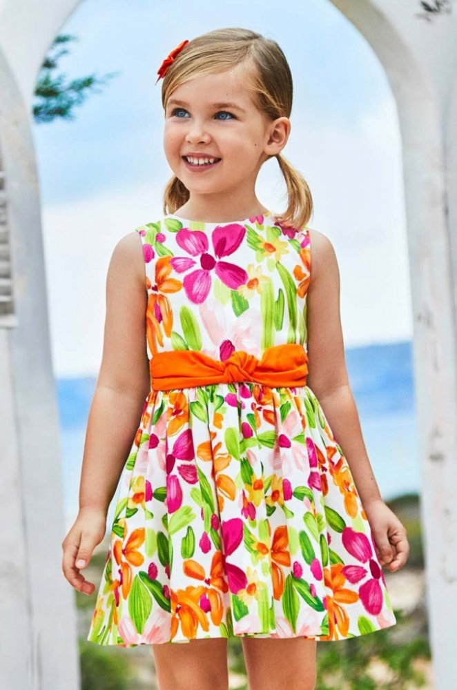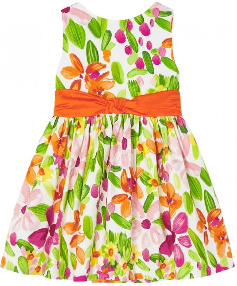 MAYORAL dívčí květované šaty s mašličkou zelená, oranžová vel. 128 cm