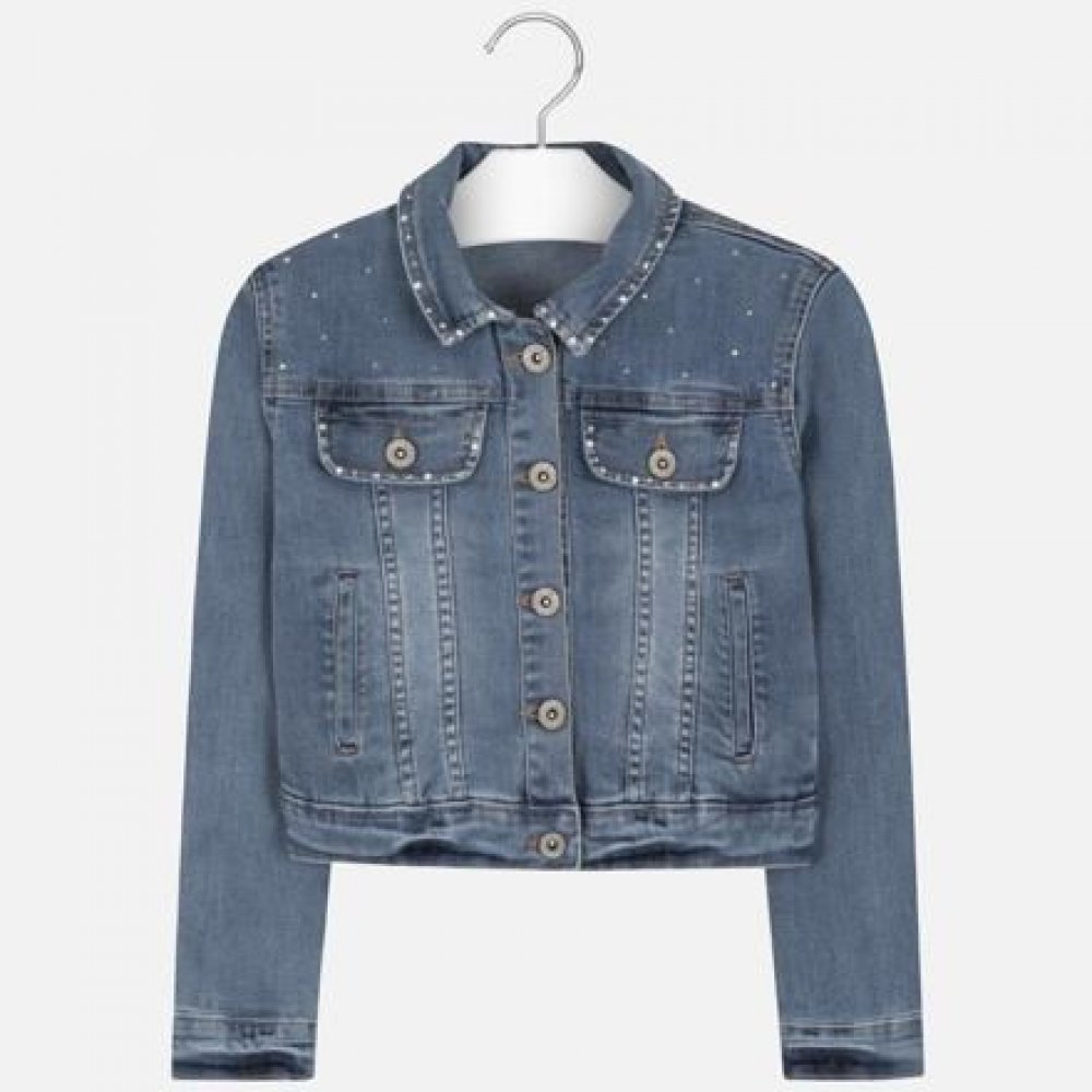 Džíska je nedílnou součástí každého dívčího šatníku. Perfektě ladí k šatům, krajkovým a tylovým sukním i ke klasickým riflím. Džínová bundička je zdobena štrasem a perličkami. sepraný design zapínání na knoflíky materiál: 92% bavlna, 6% polyester, 2% elastan artikl: Mayoral 6461-45 Bleached