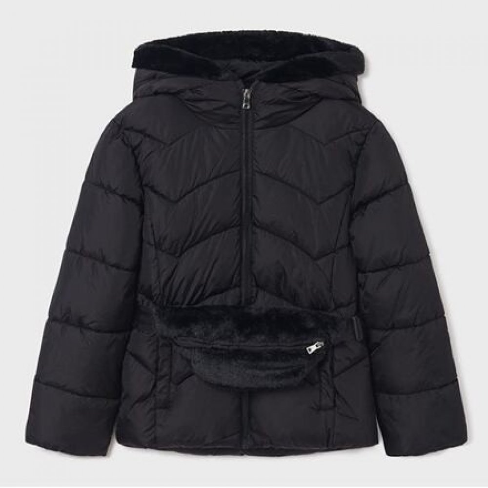 Prošívaná zimní bunda s kapucí lemovanou textilním kožíškem a s odepínací kožešinovou ledvinkou od značky Mayoral. kožešinová ledvinka s upravitelným obvodem pasu a odepínáním na plastovou zacvakávací přesku ledvinku lze nosit i k jinému oblečení dvě přední kapsy vrchní materiál: 95% polyamid, 5% polyester (šusťákový materiál) materiál výplně: 100% polyester materiál podšívky: 100% polyester (microfleece po celé bundě, v rukávech hladký materiál pro snadné oblékání) praní na 30°C artikl: Mayoral 7489-61 Negro