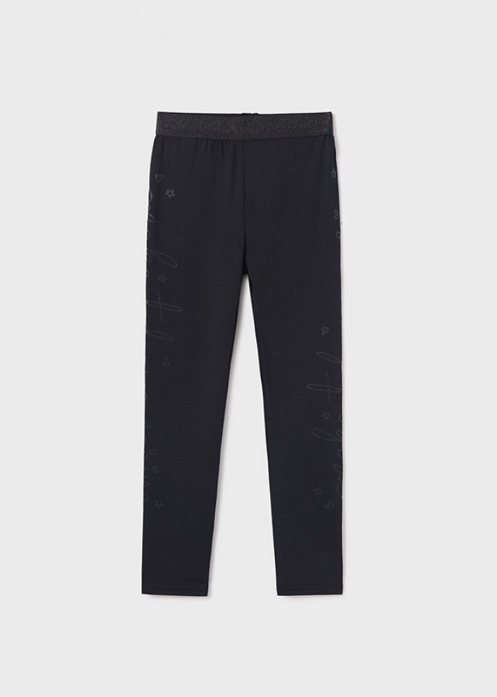 Mayoral dívčí jednobarevné dlouhé legíny s tiskem po straně. Legíny jsou z velmi pohodlného, bavlněného materiálu. V pase mají legíny měkkou, pružnou gumu. Po stranách na nohavicích jsou stříbrné nápisy.