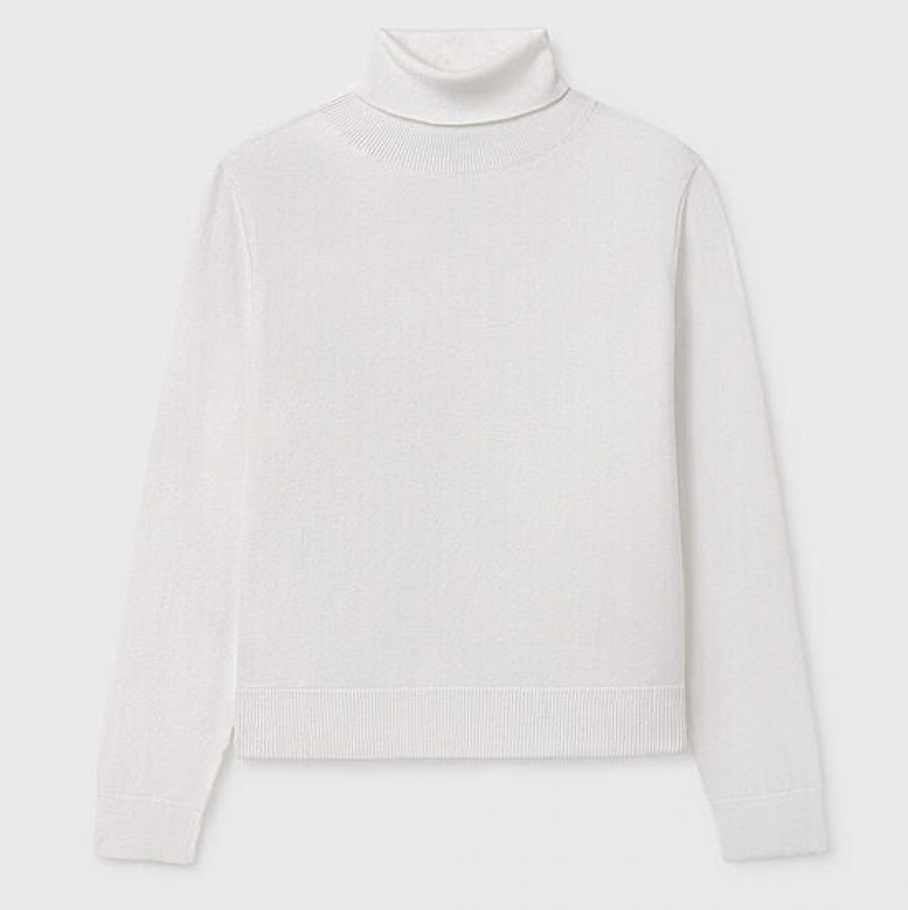 Slabý svetřík s rolákem z příjemného materiálu s bavlnou. Jednobarevný elegantní dívčí rolák ve smetanové barvě se hodí nejen ke kalhotám, ale i k sukni. materiál: 80% bavlna, 17% polyamid, 3% elastan výrobce: španělská značka Mayoral, kolekce Ecofriends artikl: Mayoral 345-33 Crudo