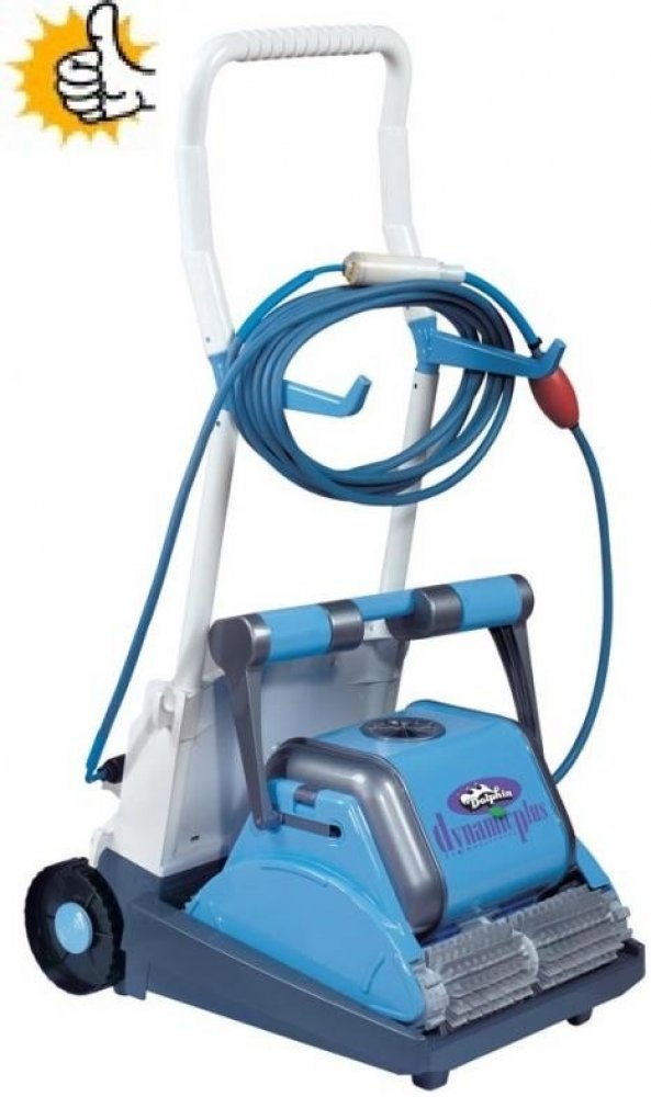 Automatický vysavač DOLPHIN Dynamic 2002 PLUS čistí dno, stěny a vodní linku bazénu. Automaticky setře, vyčistí a přefiltruje nečistoty ve Vašem bazénu. Vysoce výkonný jemný filtr o ploše 0,775 m2 s filtrační schopnosti 50 µm přefiltruje 18 m3/h vody. Tímto zařízením odstraníte nečistoty ze dna a stěn bazénu, což se projeví na kvalitě vody a na nižší spotřebě chemikálií, zvláště chloru.