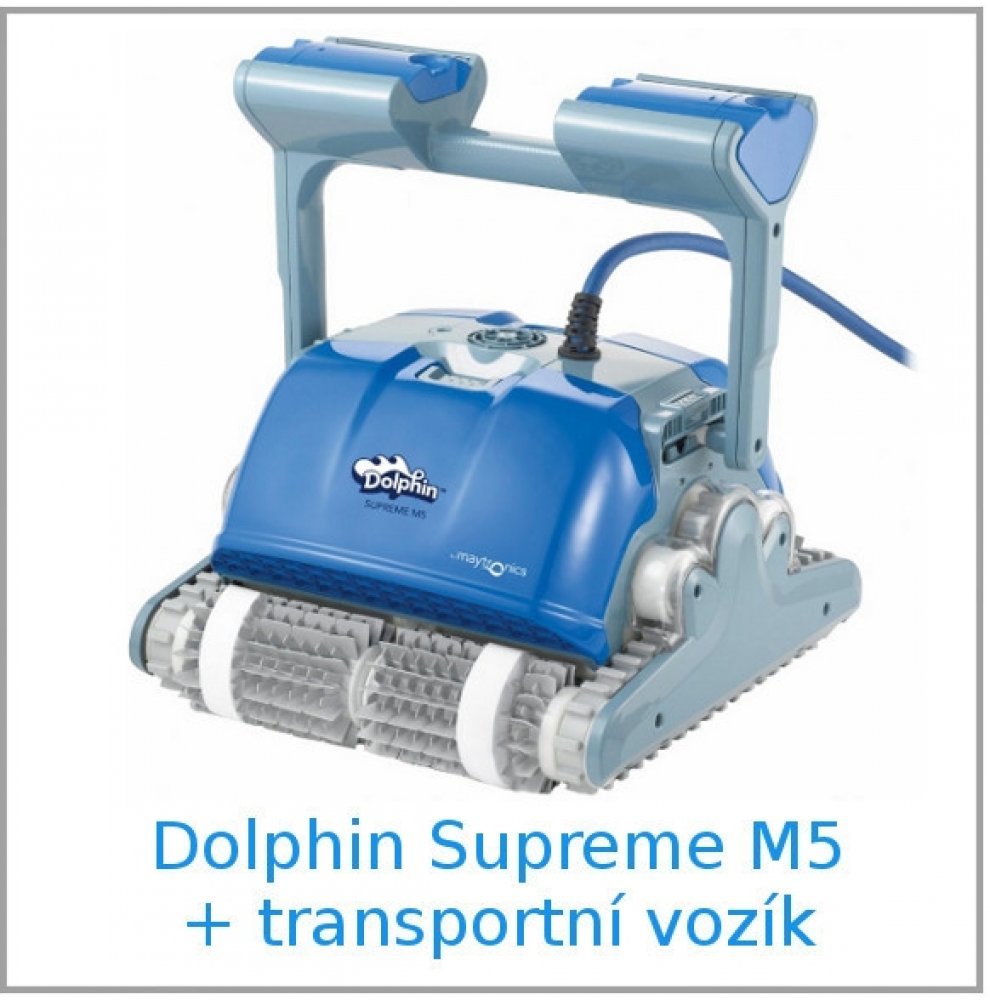 Automatický vysavač dna a stěn bazénu DOLPHIN SUPREME M5 GYRO je určen pro luxusní rodinné bazény. Automaticky setře, vyčistí a přefiltruje nečistoty v bazénu. Vysoce výkonný jemný filtr přefiltruje 17 m3/h vody. Vybaveny (jako jediné na trhu) bluetooth. Diky bluetooth je možné ovládat uvedené stroje pomoci smartphonu pres mobilní aplikaci „My Dolphin“, která je zdarma ke staženi v App Storu a na Google Play.
