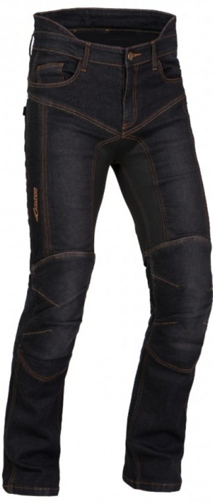 Perfektní kevlarové jeansy pro každý den, ideální pro jízdu ve městě. Na exponovaných místech je všita z vnitřní strany žáruvzdorná, vysoce pevná textilie, odolná proti odření. Stretchové panely zvyšují komfort pohybu. Jezdíte-li na motorce do práce, nemusíte s sebou nosit náhradní oblečení. Propracovaný střih - dobře sedí, moderní vzhled.