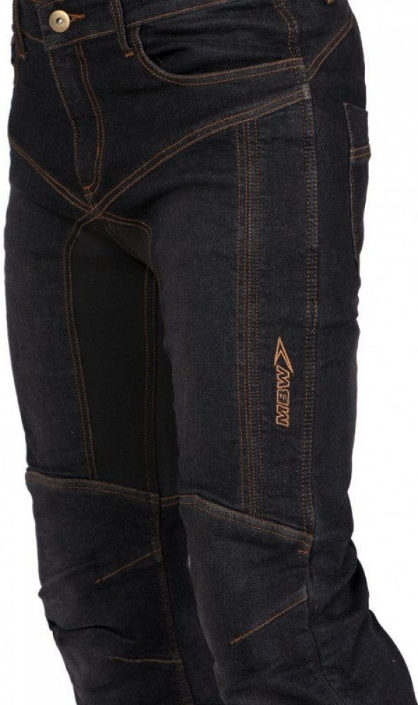 materiál DENIM podšitý na exponovaných místech aramidovou textilií (kevlarem)